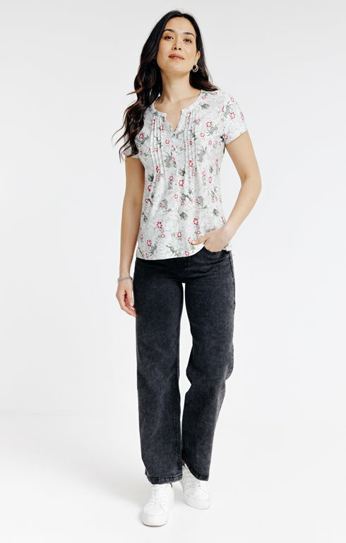 Tee-shirt imprimé col mao avec plis