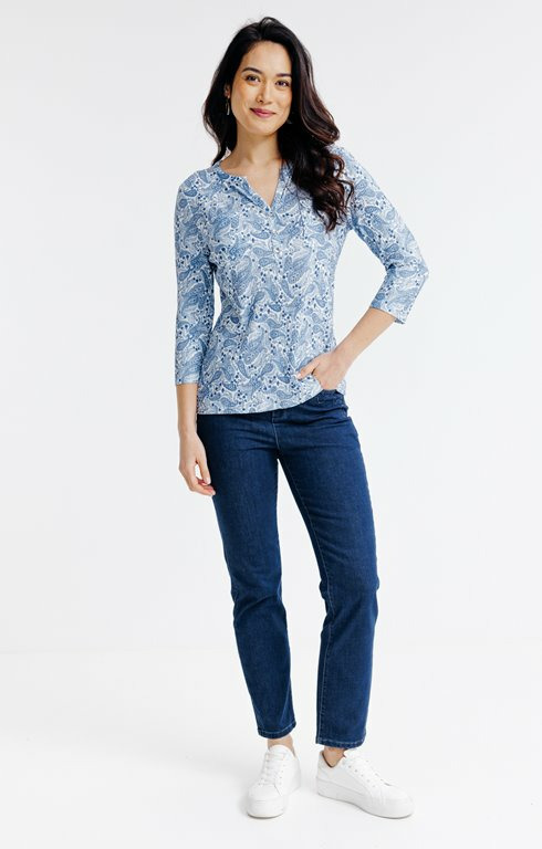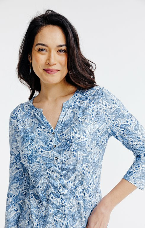 Tee-shirt imprimé col mao et poches