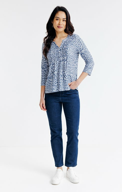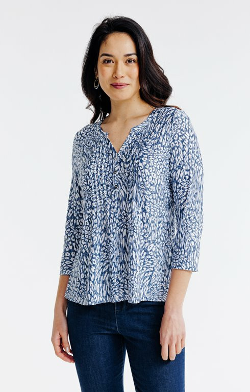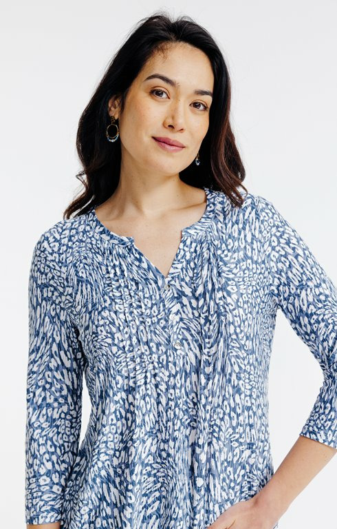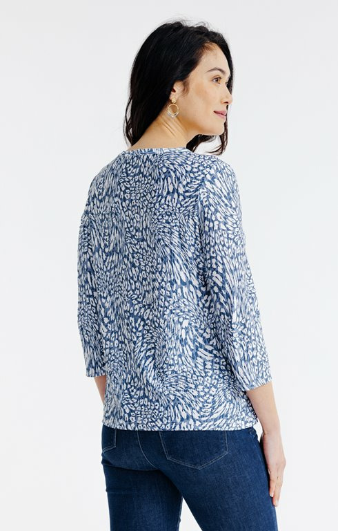 Tee-shirt léopard col mao avec plis