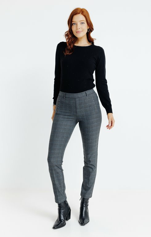 Fabriqué dans un tissu extensible de qualité, ce pantalon dispose d’une taille élastiquée et d’une fermeture discrète. Les clous sont placés avec précision pour un effet subtil sans compromettre la douceur du tissu. Entretien facile, adapté au lavage en machine.