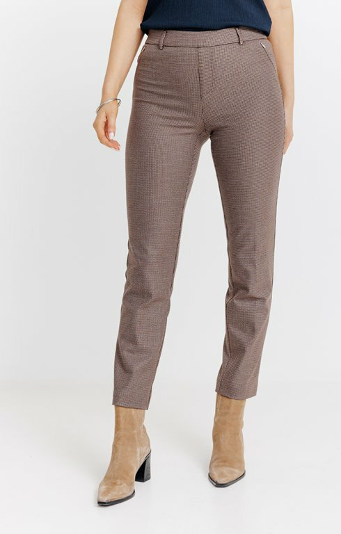 Fabriqué dans un tissu bi-stretch, ce pantalon présente une coupe slim, une taille mi-haute et une finition soignée. Sa composition assure élasticité et durabilité, adaptée à un usage quotidien.