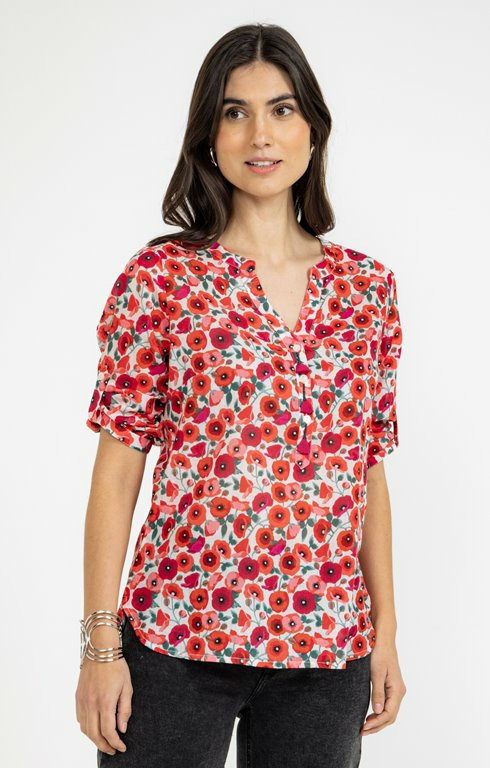 Tunique imprimée fleurs avec pompons