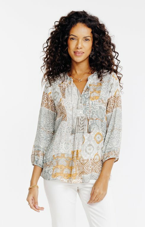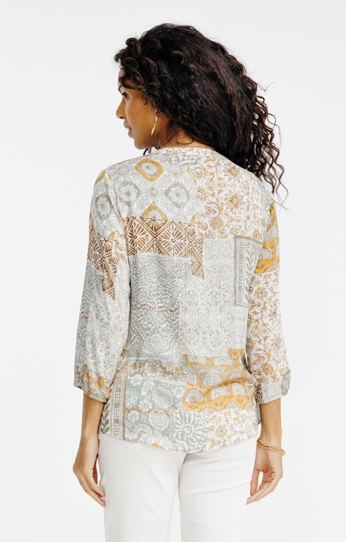 Peut-on porter ce chemisier en toutes saisons ? Sa matière légère le rend idéal pour le printemps et l’été, mais il peut aussi se porter sous une veste en automne.