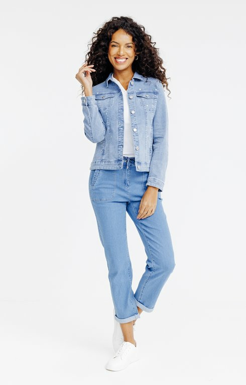 Veste denim bleach broderie all over
