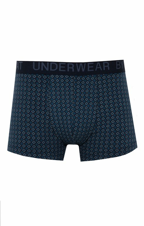 Boxer imprimé en coton majoritaire avec message humoristique. Coupe près du corps. Message « Beau gosse » imprimé dans une couleur contrastante au dos. Imprimé intégral à losanges composés de traits et d'un point au centre. Matière extensible. Taille élastiquée contrastante rehaussée du logo de la marque. Coutures discrètes. Composition en coton majoritaire.