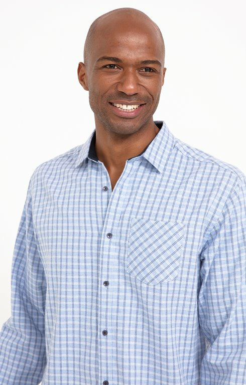Chemise manches longues à carreaux, 100% coton, coupe ajustée, fermeture par boutons, col classique, lavable en machine.
