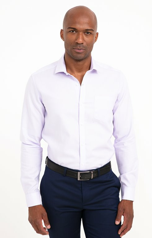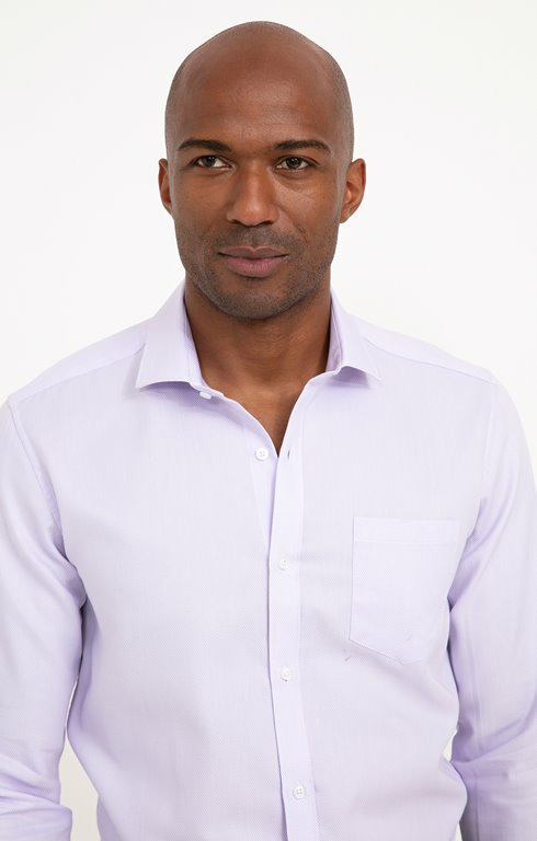 Réponse : La Chemise Ville Purple Cube est ajustée pour épouser la silhouette sans serrer.