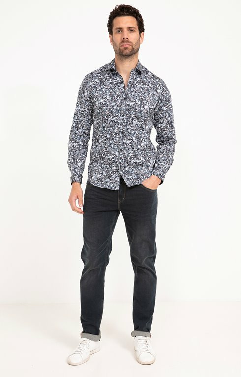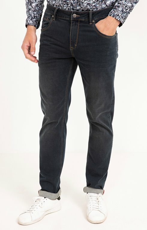 "Jean straight 5 poches finition roulottée. Coupe straight. Longueur pied avec base roulottée. Fermeture par zip recouvert et bouton métallique griffé. 2 poches cavalières et une poche ticket rivetées devant. 2 poches plaquées surbaissées avec rivets griffés au dos. Denim brut. Passants pour ceinture. Jacron marque en denim usé au dos. Surpiqûres contrastantes. Composition en coton majoritaire.Notre mannequin Joffrey mesure 1m88 et porte un jean taille 42."
