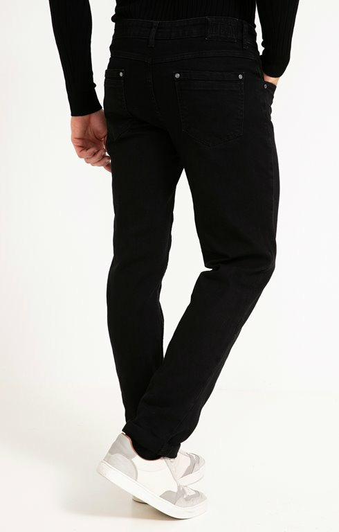 Fabriqué en denim noir, ce modèle présente une coupe slim, une fermeture zippée avec bouton, cinq poches classiques et des coutures discrètes pour un rendu soigné. La matière est composée majoritairement de coton avec une légère élasticité pour un ajustement parfait.