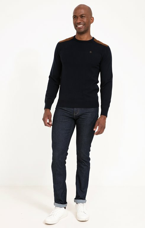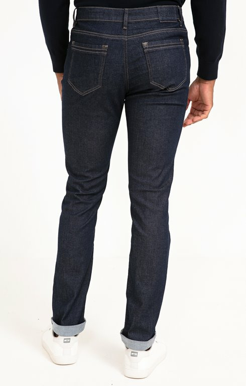 Jean slim uni à 5 poches. Coupe slim. Fermeture à zip sous bord avec bouton à la taille. 2 poches cavalières et une poche ticket devant. 2 poches plaquées au dos. Coloris uni effet chiné. Tissu en denim stretch. Rivets gravés sur les poches devant et au dos. Jacron en tissu avec marque embossée. Surpiqûres contrastantes. Passants pour ceinture. Composition en coton majoritaire contenant du polyester recyclé.Notre mannequin Marvin mesure 1m87 et porte un jean taille 42.