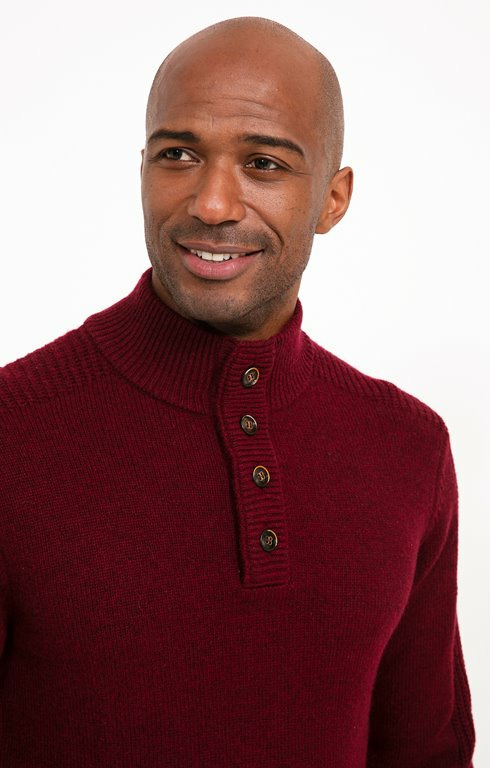 Pull camionneur chiné à boutons et détails côtelés. Coupe droite. Manches longues sur emmanchures droites. Col montant à fermeture boutonnée, 4 gros boutons contrastants. Maille chinée moyenne jauge. Détail bande en côtes sur le dessus des manches. Larges bords-côtes au col, aux poignets et à la base. Composition contenant de la laine.Notre mannequin Nicolas mesure 1m87 et porte un pull taille M.