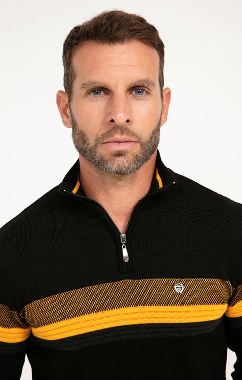 Confectionné dans une maille douce et résistante, ce pull se distingue par son col montant qui protège sans serrer, idéal pour les journées fraîches. Les rayures apportent une touche graphique moderne, facile à associer avec un jean ou un pantalon chino pour un look soigné sans effort. Sa coupe ajustée valorise la silhouette tout en garantissant une liberté de mouvement optimale.