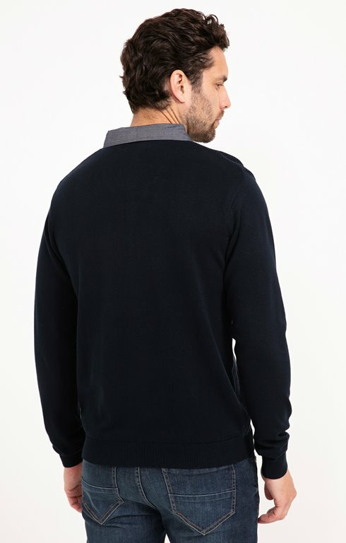 Pull Uni Col V Avec Chemise