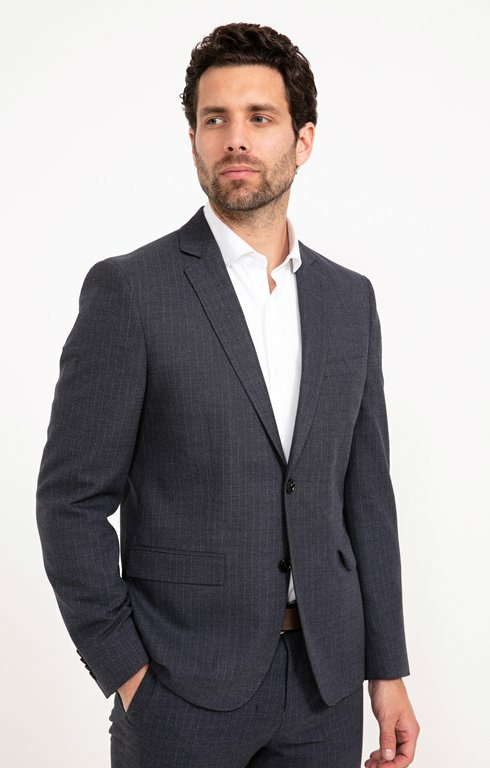 Tissu couleur gris moyenCoupe ajustéeComposition : 58%Polyester recyclé 9%Polyester 24%Viscose 7%Laine 2%ElasthanneUne fente dans le dosFermeture à deux boutonsRevers de col renforcé par une feutrine ton sur tonPoche poitrine avec doublure unie pouvant être utilisée comme pochetteDeux poches à rabatsPoche intérieure portefeuille avec renforts tissus