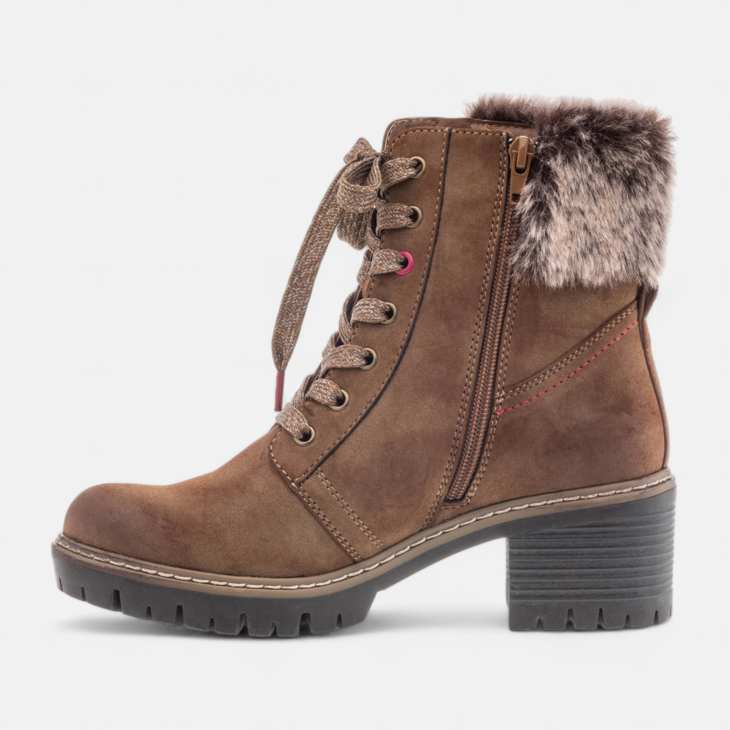Affirmez votre style avec ces bottines à lacets cognac, alliant élégance et confort au quotidien. Leur talon subtil rehausse votre silhouette sans sacrifier la praticité.
