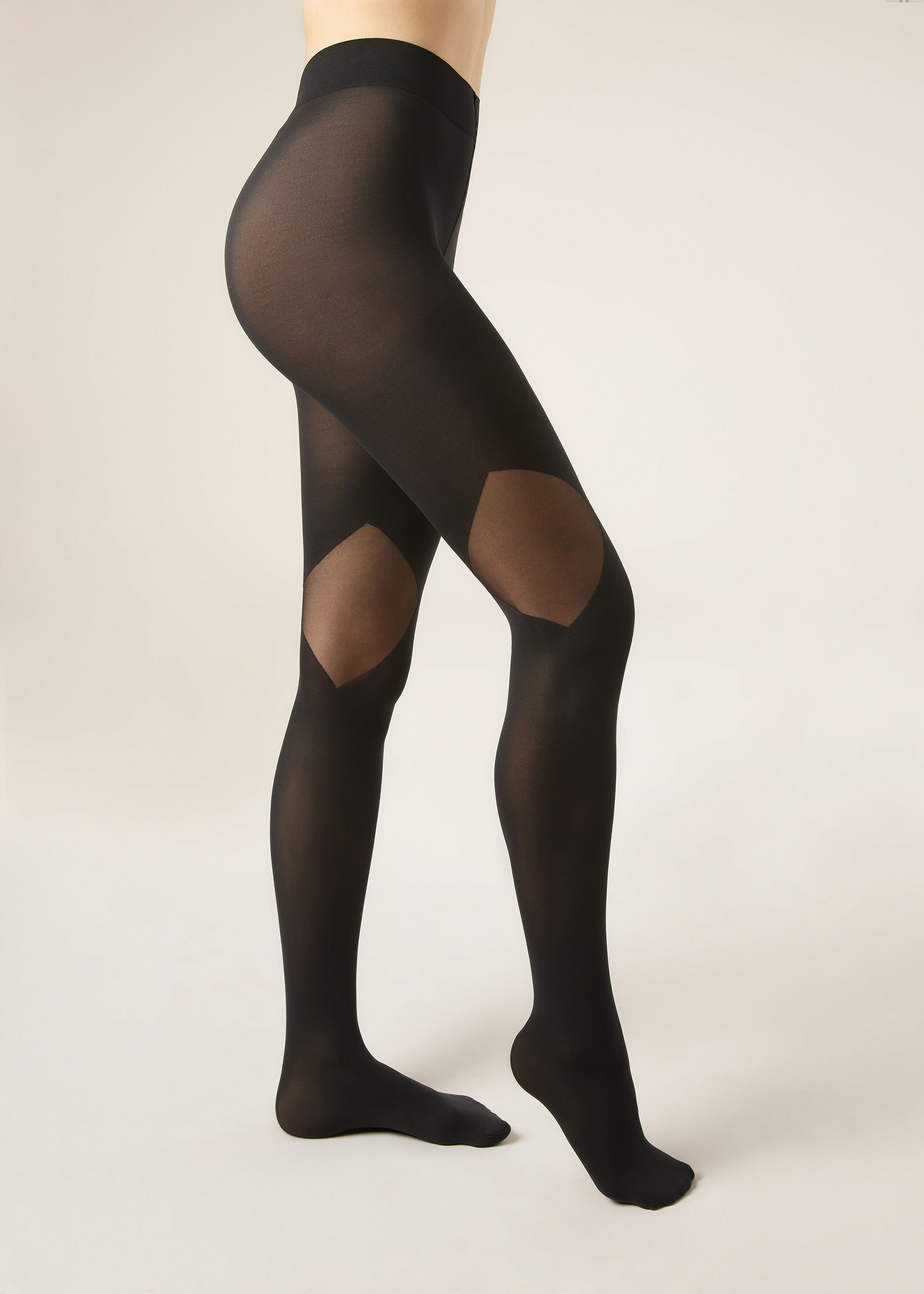 Collant opaque 70 deniers pour femme avec motif géométrique et empiècements voile. Doté d'un gousset en coton et de bouts de pieds invisibles pour un confort maximal, il conjugue style moderne et détails raffinés. Idéal pour compléter des looks tendance avec élégance.