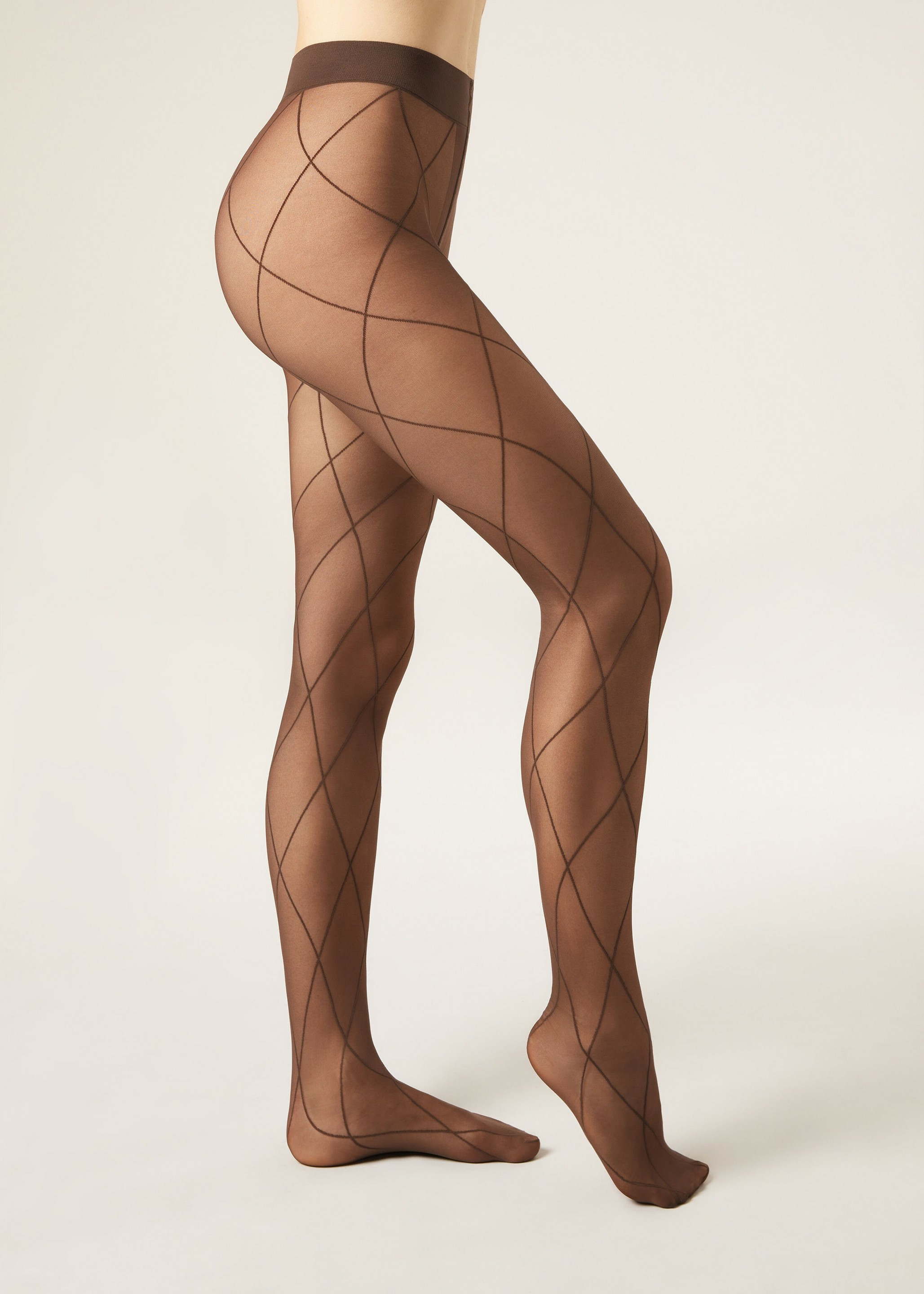 Collant voile 30 deniers pour femme avec motif à grands losanges. Doté d'un gousset en coton et de bouts de pieds invisibles pour un confort maximal, il conjugue style moderne et détails élégants. Idéal pour sublimer votre look avec style.