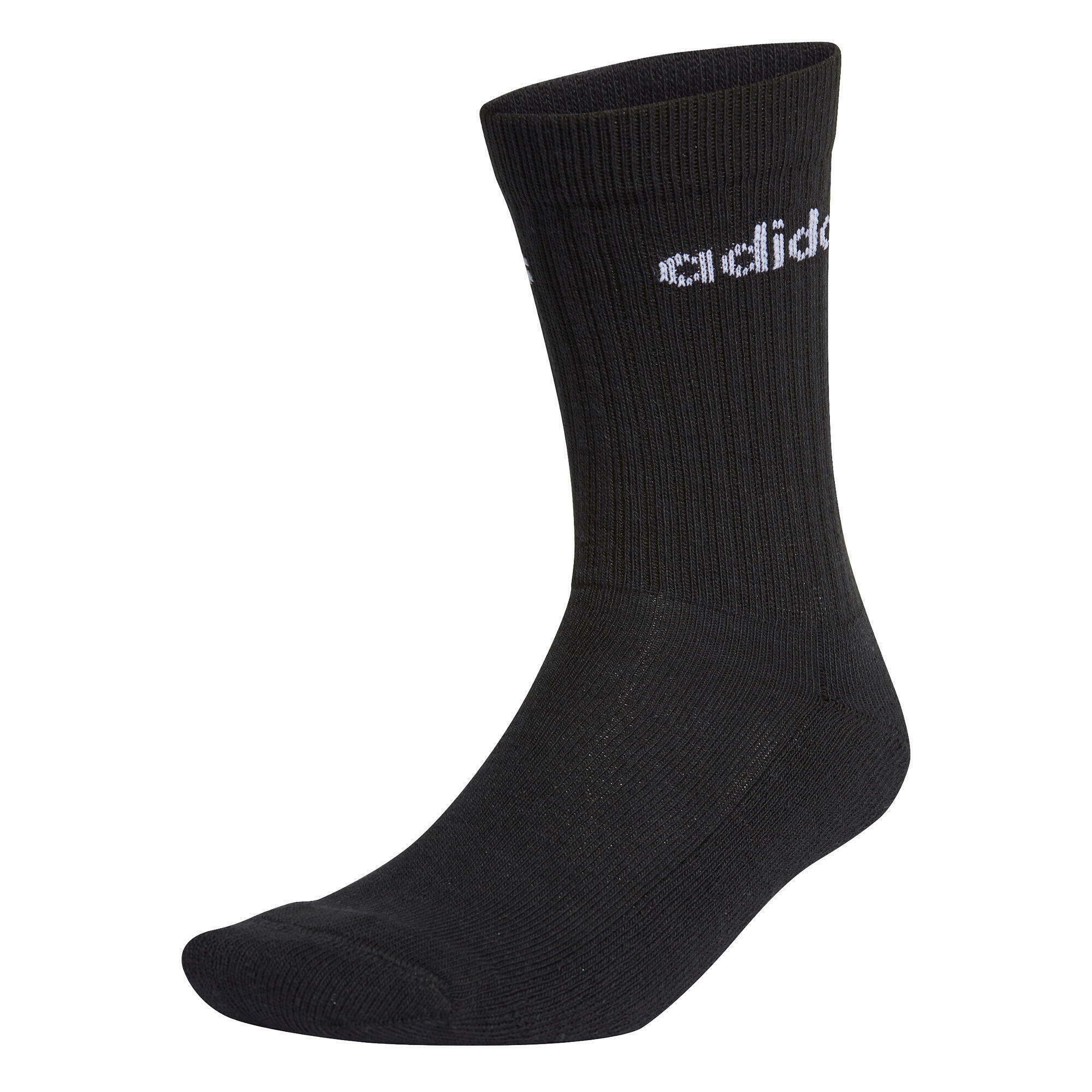 Lot de 3 paires de chaussettes hautes Adidas, couleur noire. Bouclette épaisse sous le pied pour plus de protection. Composition et détails techniques spécifiques non communiqués.