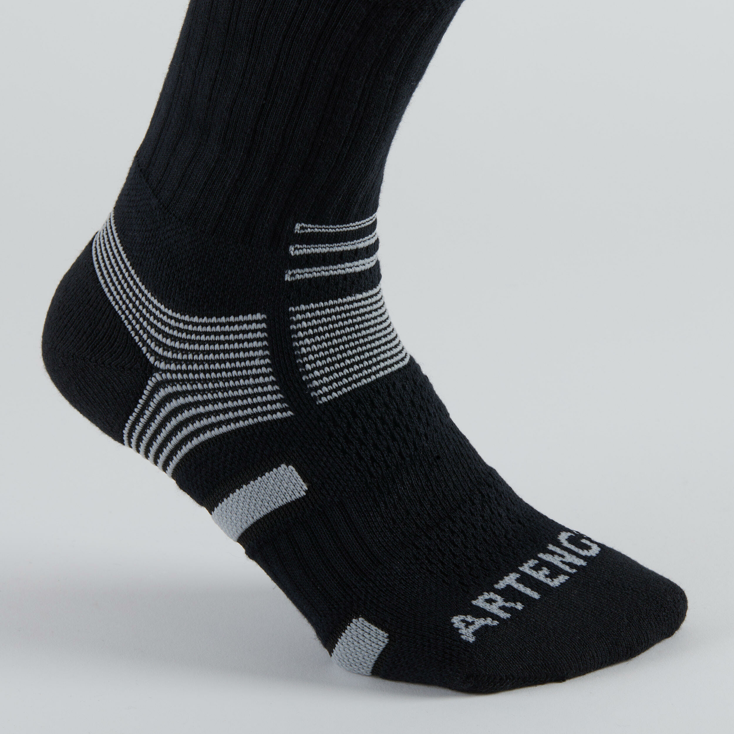Optez pour un confort optimal et un maintien parfait avec les chaussettes de sport hautes Artengo RS 560. Conçues pour accompagner vos performances, elles allient technicité et style sobre.