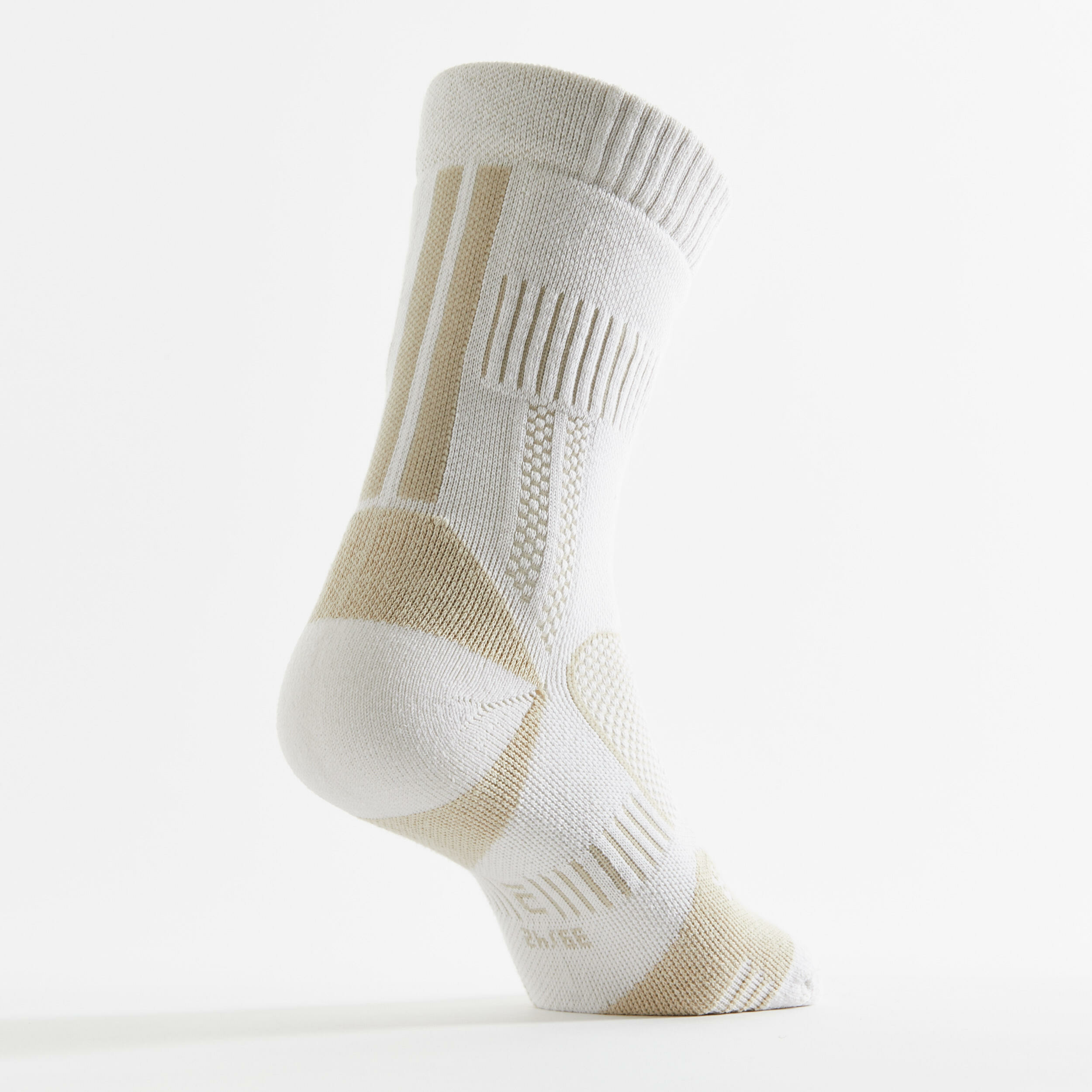 Ces chaussettes épaisses signées ARTENGO sont pensées pour le sport, offrant une sensation de maintien unique grâce à leurs deux fils élastiques qui enveloppent le pied et la cheville. Leur coupe haute protège et stabilise, tandis que le coton assure une respirabilité optimale pour garder vos pieds au sec et à l’aise, même lors des échanges les plus longs. Le blanc cassé apporte une touche élégante et discrète à votre tenue sportive.