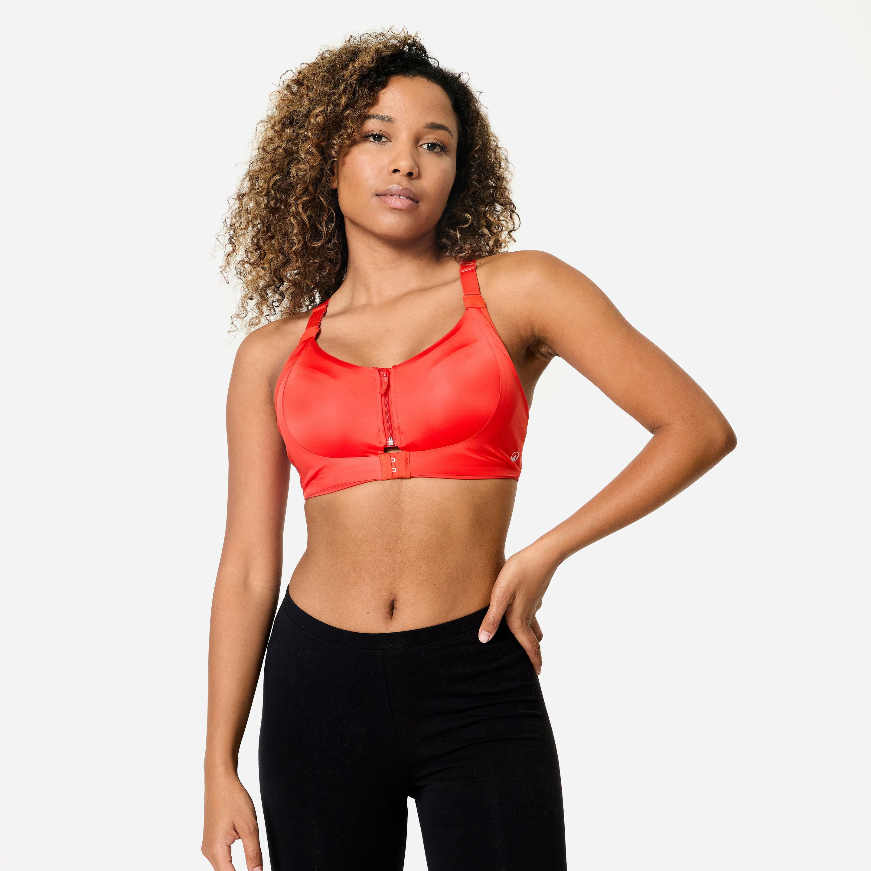 Fabriquée par DECATHLON, cette brassière est disponible en rouge, dans la catégorie Brassière Femme. Elle intègre un zip frontal robuste et une double couche de maintien. Une version avec poche pour prothèse est proposée sous la référence 8736845.