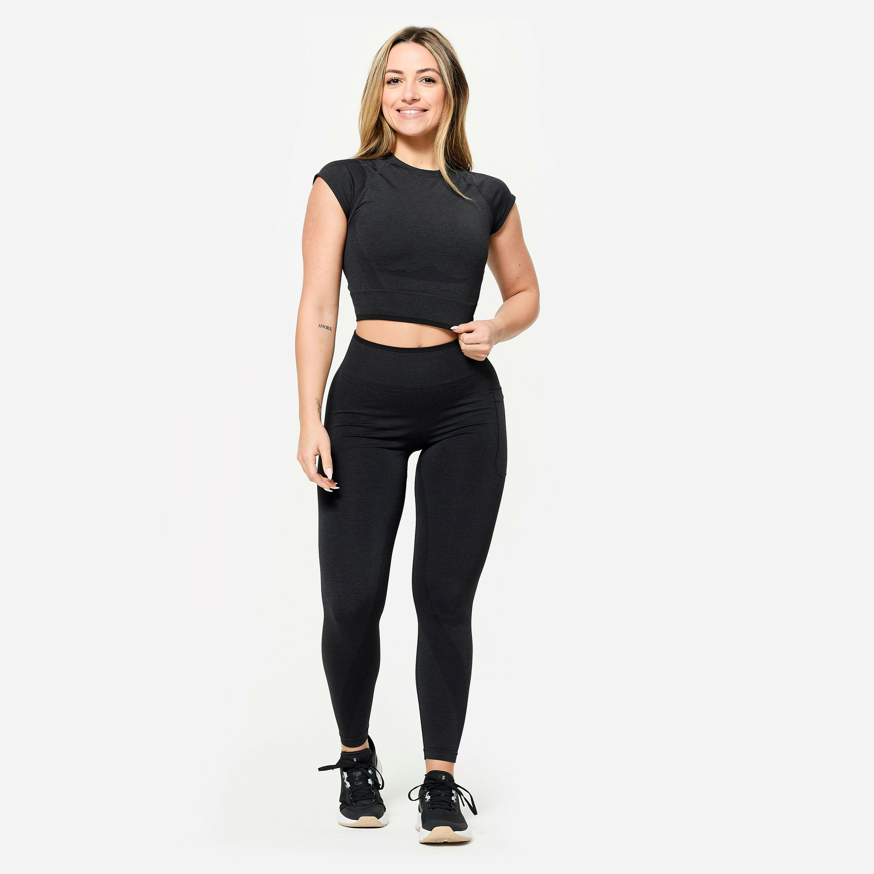 Pensé pour les femmes actives, ce crop top allie style et performance. Sa matière extensible épouse parfaitement le corps, offrant une sensation seconde peau qui ne gêne jamais, même lors des séances les plus intenses. Sa couleur noire intemporelle s’intègre facilement à toutes vos tenues de sport.