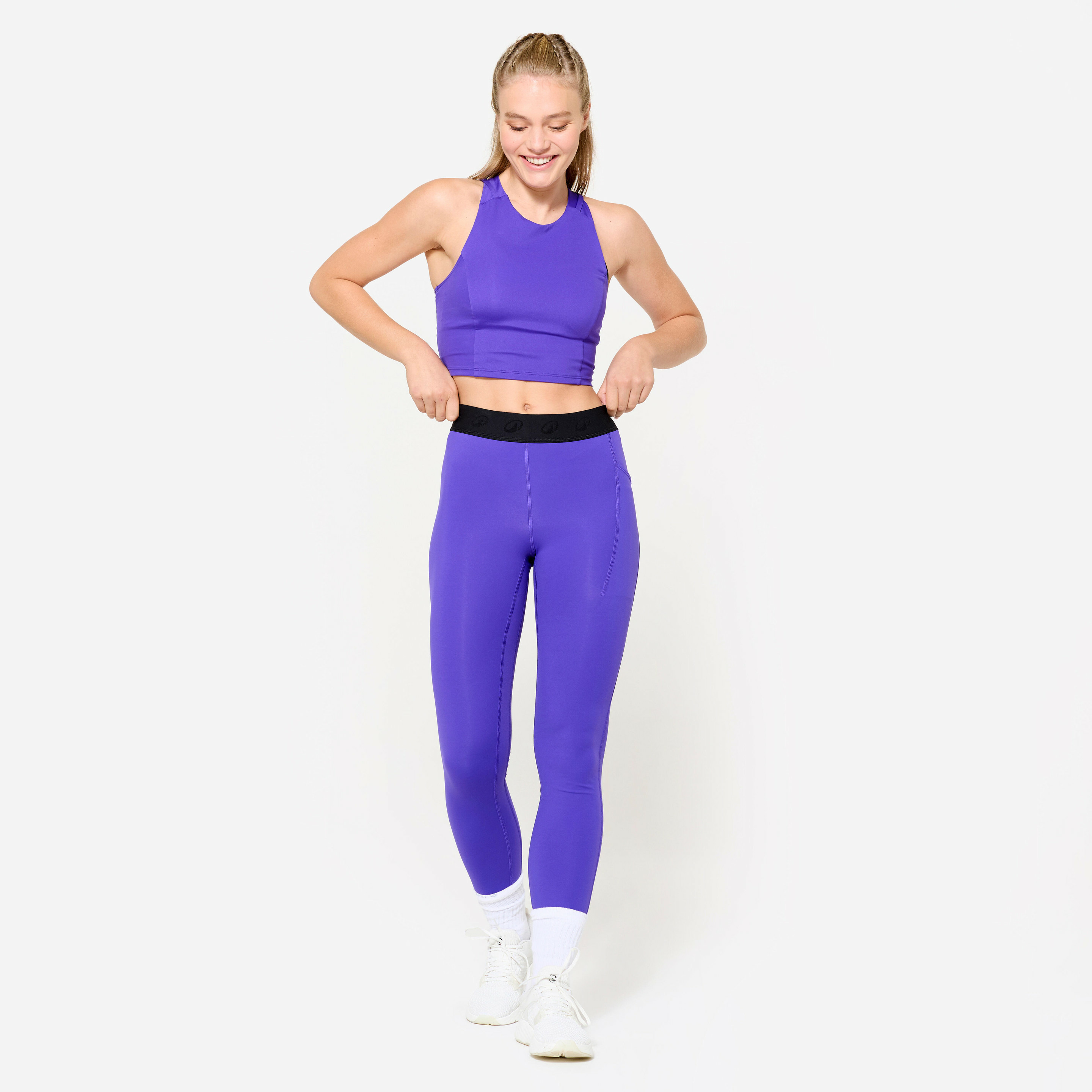Fabriqué par DOMYOS, ce débardeur est réalisé dans une matière technique respirante, idéale pour les sports indoor. Sa coupe crop-top moulante et ses détails travaillés en font un incontournable de la saison, pensé pour être porté sur une brassière.