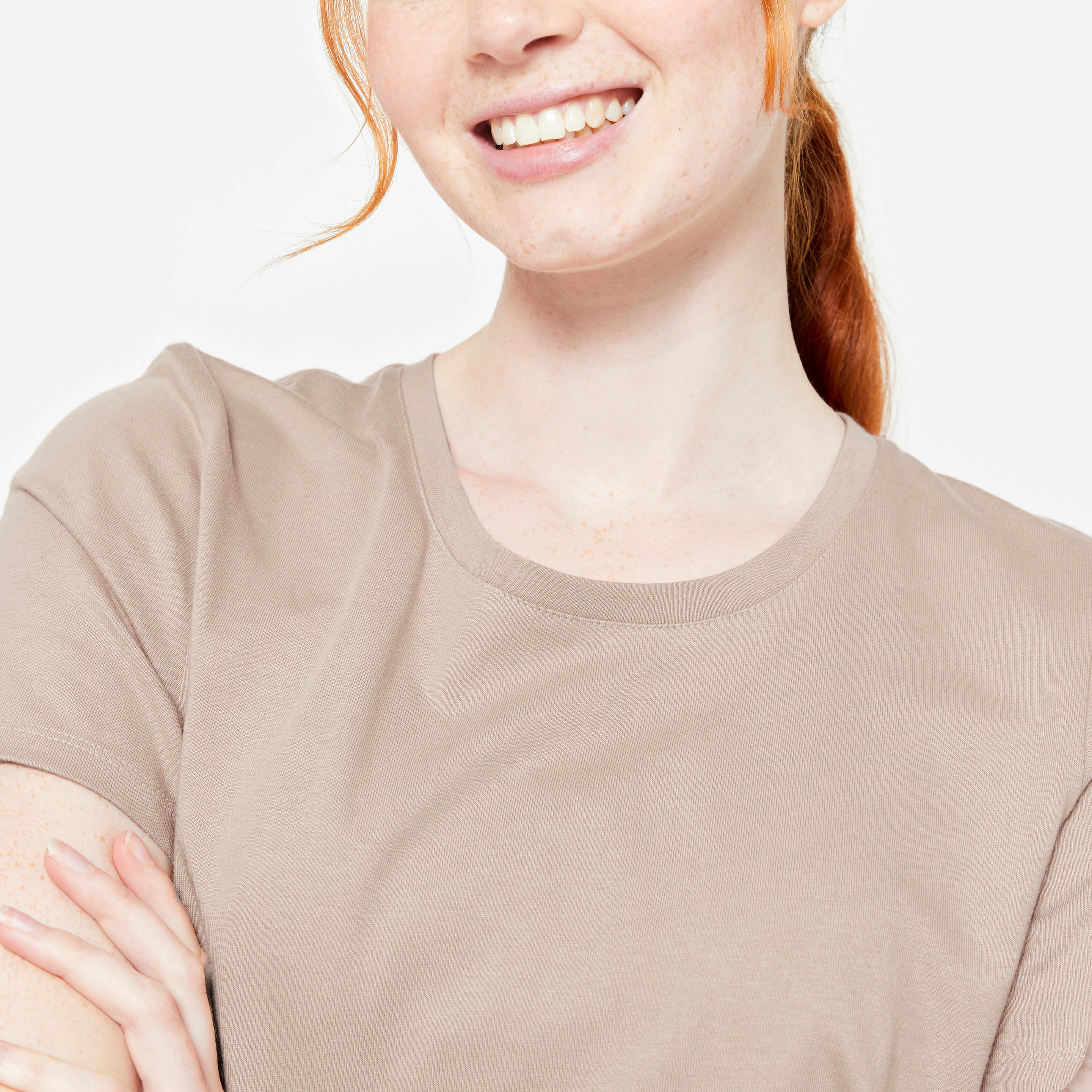 Matière : 100 % coton. Coupe ajustée. Col rond. Coloris beige caramel. Marque DOMYOS. Entretien facile, lavage en machine à 30 degrés recommandé.