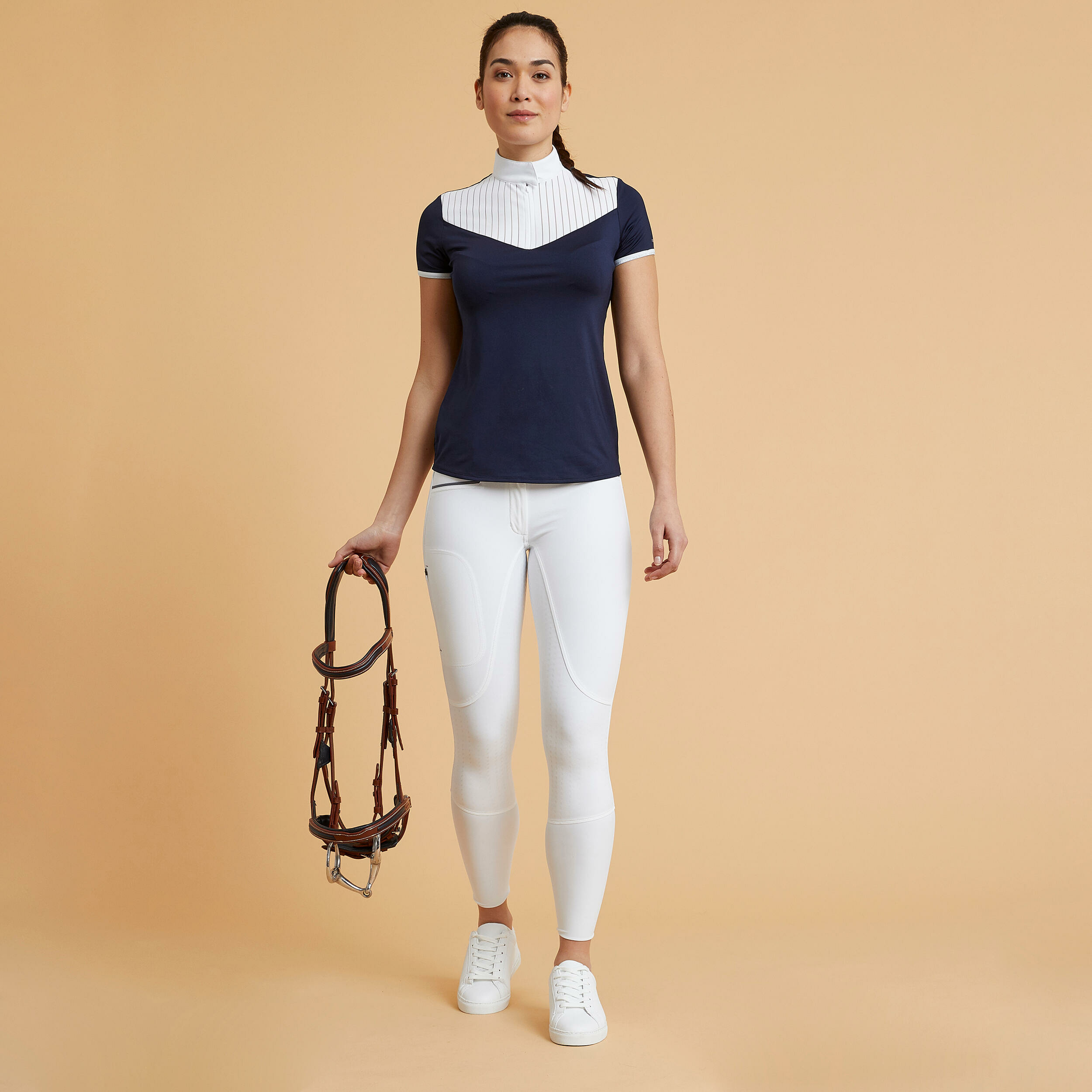 Alliez performance et élégance avec ce polo de concours manches courtes conçu pour les cavalières exigeantes. Sa coupe féminine et son tissu respirant vous accompagnent avec style tout au long de vos parcours.