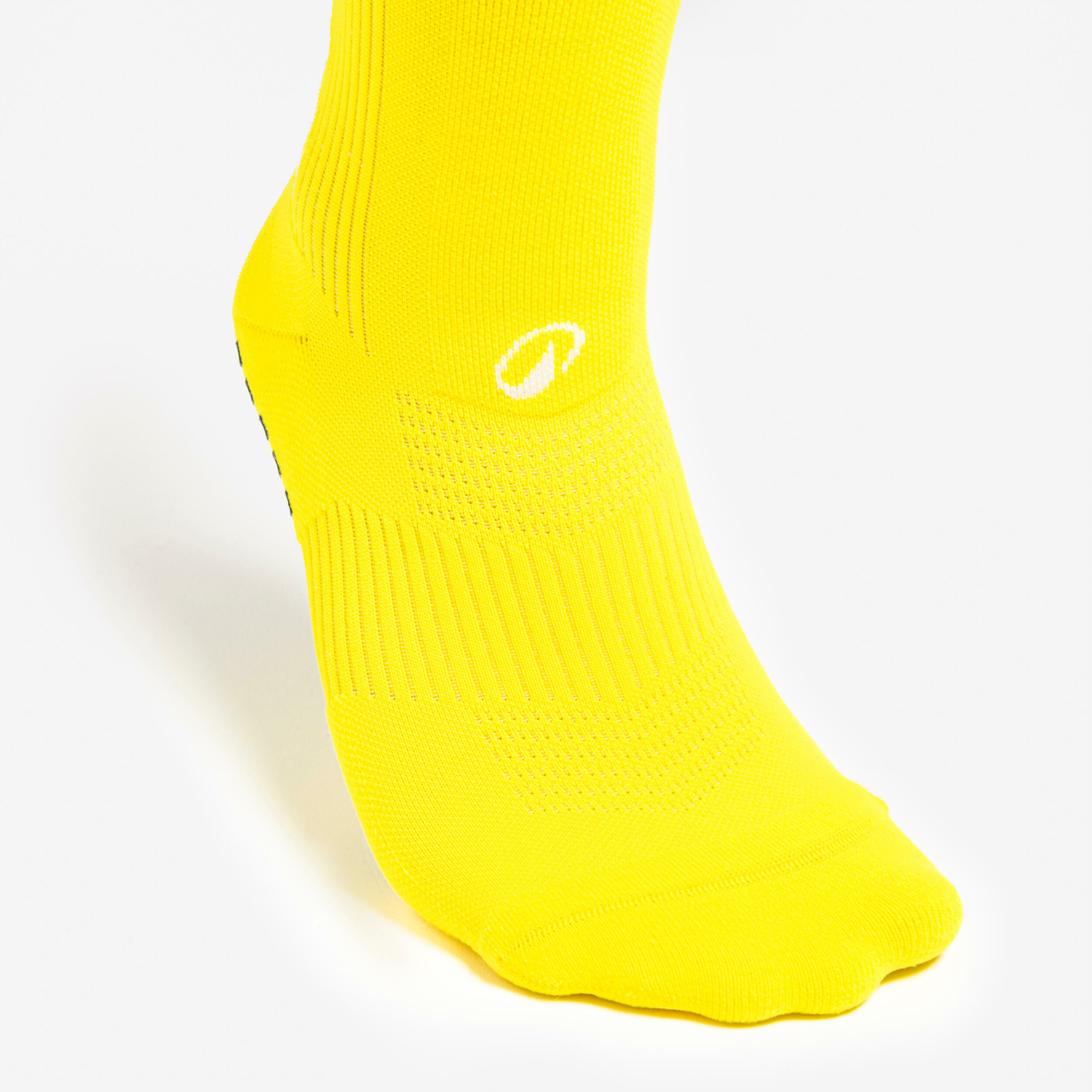 Conçues pour les joueuses exigeantes, ces chaussettes mi-mollet offrent un maintien optimal grâce à leurs grips adhérents stratégiquement placés. Leur coupe ajustée épouse parfaitement la forme du pied, assurant une tenue sans glissement, que ce soit à l’entraînement ou en compétition. La couleur jaune dynamique affirme ta présence sur le terrain tout en restant facile à associer à ton équipement.