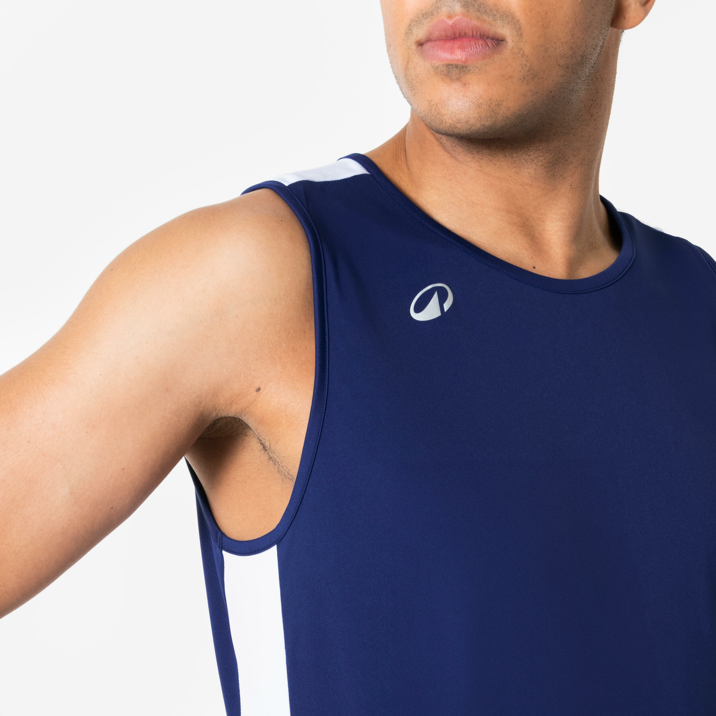 Adoptez le maillot TANK 100 navy pour un premier pas réussi sur le terrain de basket. Léger et respirant, il accompagne chaque mouvement avec aisance.