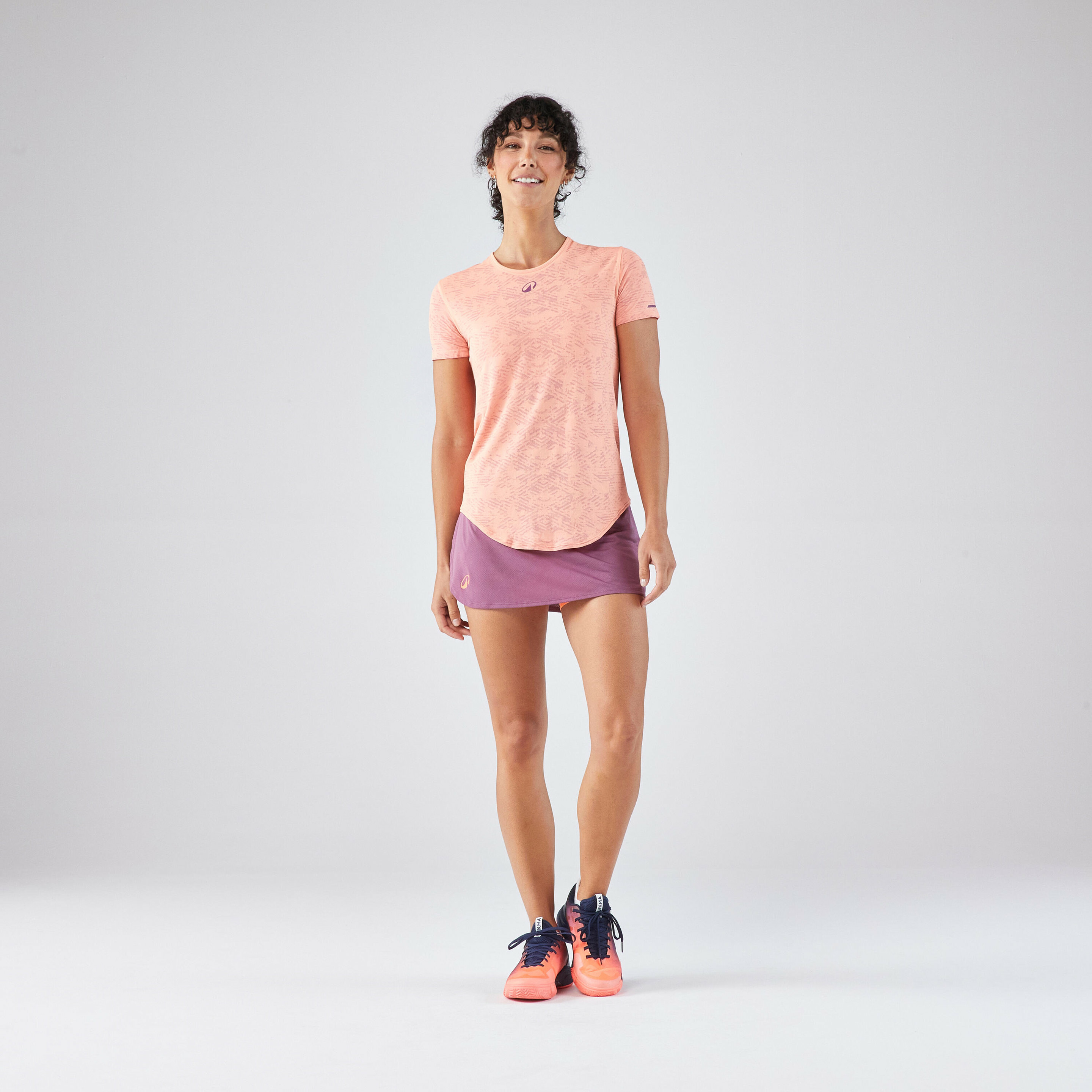 Affirmez votre style sur le court avec ce T-shirt de padel femme en orange corail, alliant performance et élégance. Conçu pour vous accompagner dans chaque échange, il offre une sensation de légèreté et de fraîcheur inégalée.