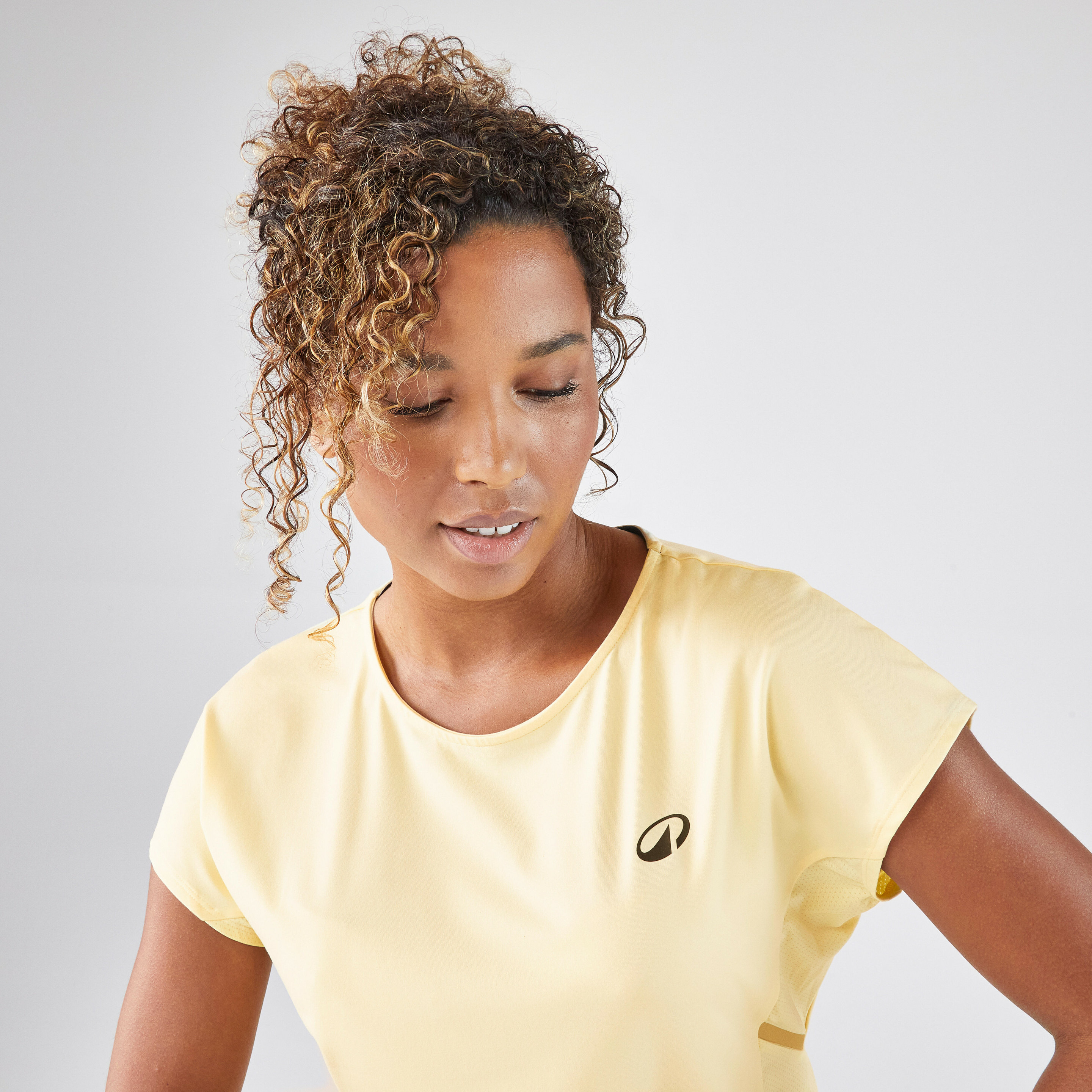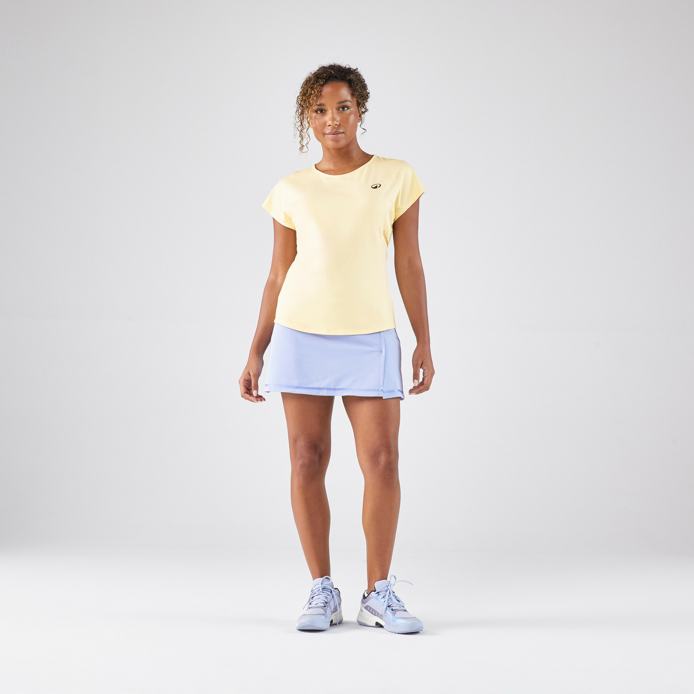 Alliez performance et élégance sur le court avec le T-shirt tennis col rond dry femme KUIKMA. Sa teinte jaune dynamique illumine votre tenue tout en offrant un confort optimal.