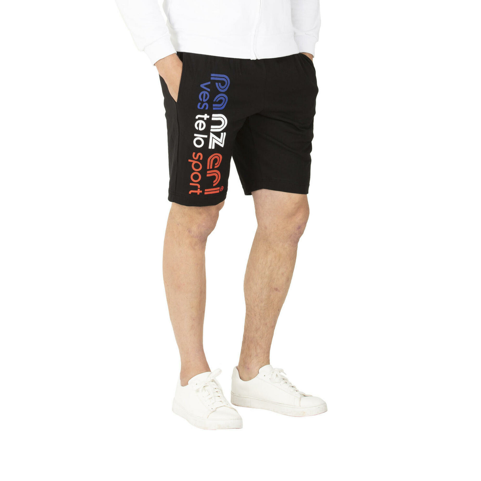 Adoptez un style décontracté et affirmé avec le Bermuda Panzeri Park B, un essentiel polyvalent pour vos journées actives. Son design bicolore noir et bleu blanc rouge apporte une touche sportive et moderne à votre garde-robe.