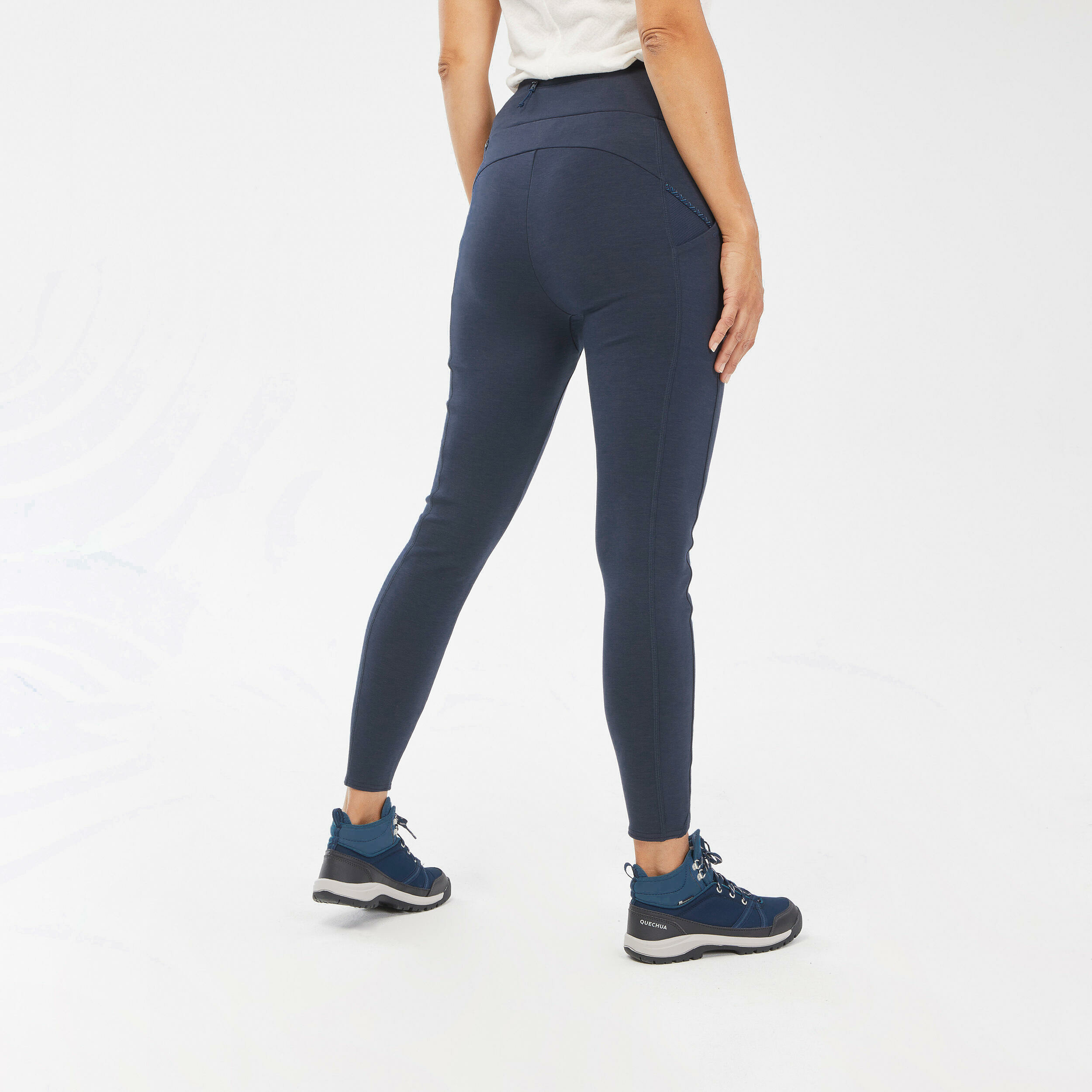 Ce legging de randonnée femme NH100 a été conçu pour rester au chaud lors de vos randonnées en nature par temps frais. Sa taille haute et sa large ceinture ajustable s'adaptent à toutes morphologies. Pratique avec sa poche dos sécurisée.