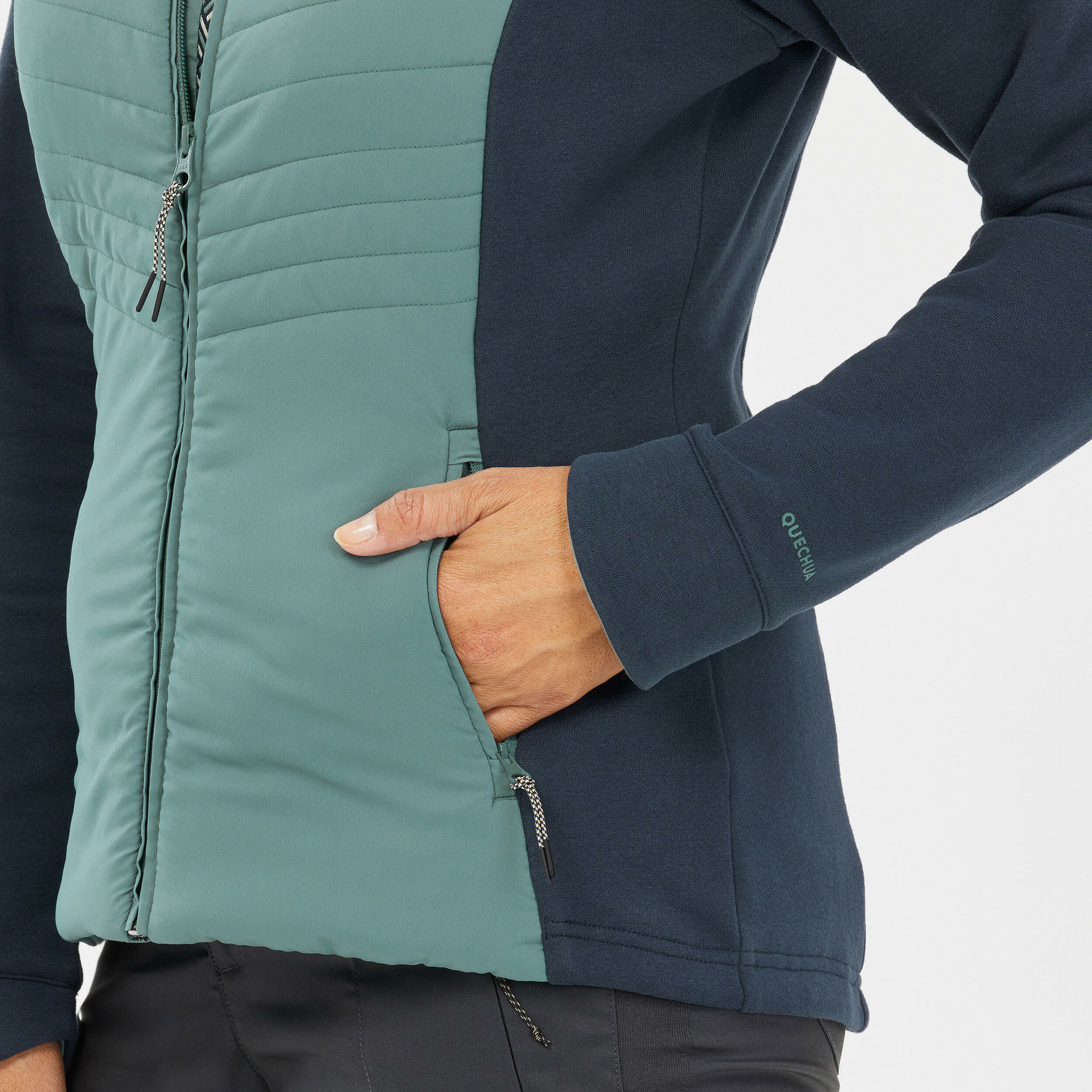 Fabriqué par QUECHUA, ce sweat NH500 Hybrid est doté d’une coupe-vent sur le torse, d’une capuche détachable et ajustable, de deux poches sécurisées sur les côtés et d’une poche poitrine. Sa matière isolante assure une bonne rétention de la chaleur, idéale pour les randonnées fraîches.