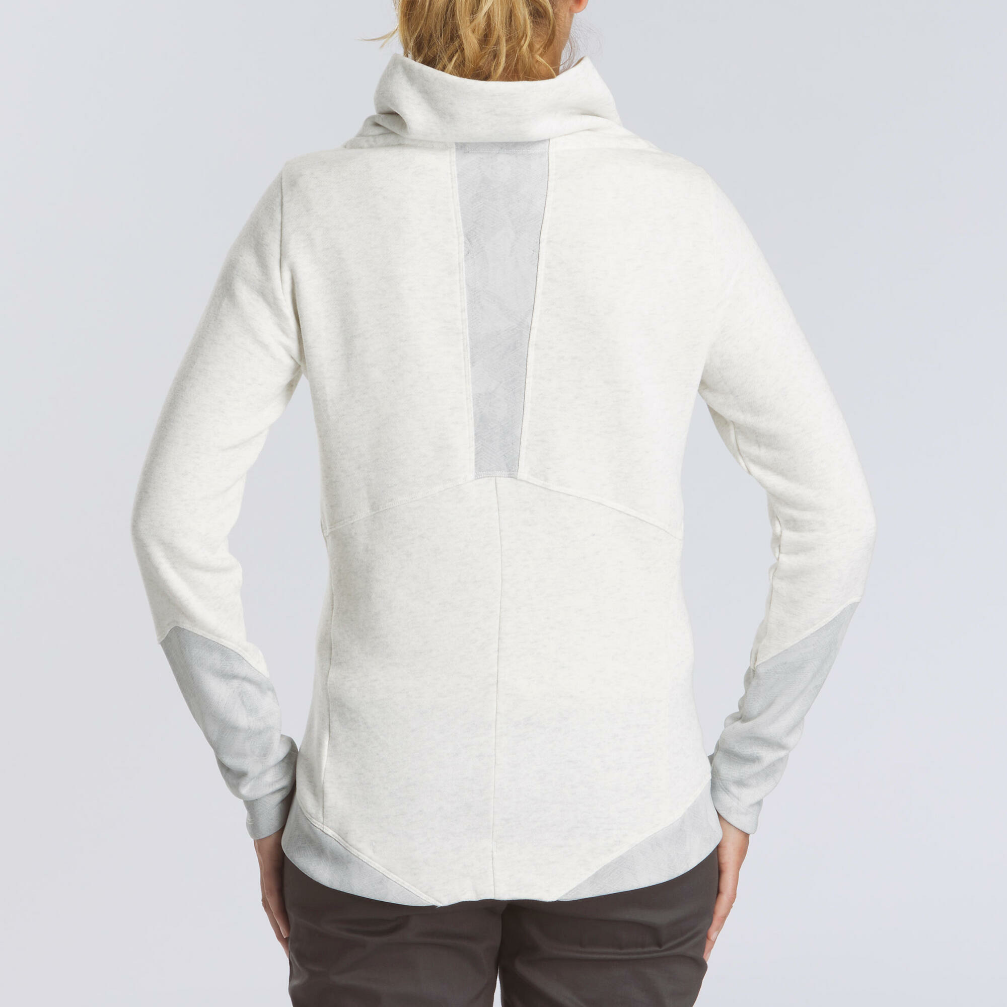 Ce sweat chaud de randonnée est conçu pour randonner en nature par temps frais. Douillet et pratique, il vous maintient au chaud pendant votre activité. Un sweat confortable et très féminin, qui protège du froid grâce à un grand col douillet et un dos long. Pratique pour vos randonnées : 1 sous-poche sécurisée est cachée dans la poche kangourou.