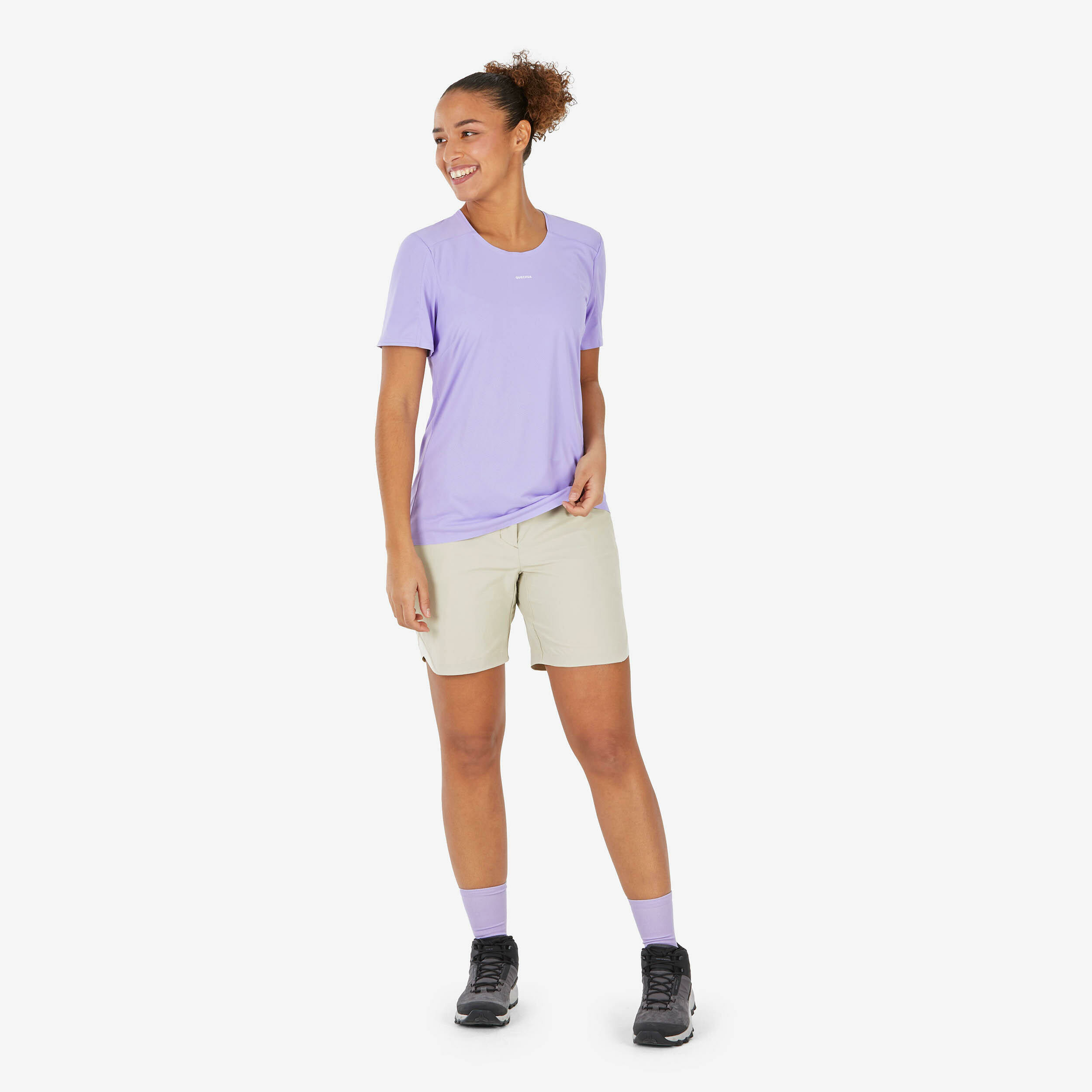 Restez concentrée sur votre parcours grâce à une gestion optimale de la transpiration et une coupe qui libère vos mouvements. Léger et respirant, il vous garantit un confort durable, quelle que soit la durée de votre randonnée.