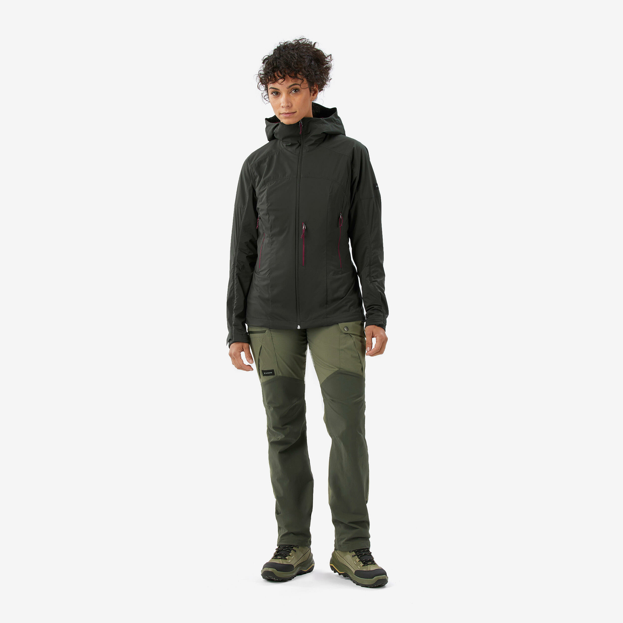 Cette veste softshell compacte et déperlante vous accompagne sans compromis lors de vos treks. Son design épuré intègre un empiècement en laine mérinos sous les bras, offrant une respirabilité optimale et une régulation naturelle de la température. Sa coupe ajustée épouse parfaitement la silhouette tout en garantissant une liberté de mouvement essentielle en randonnée.