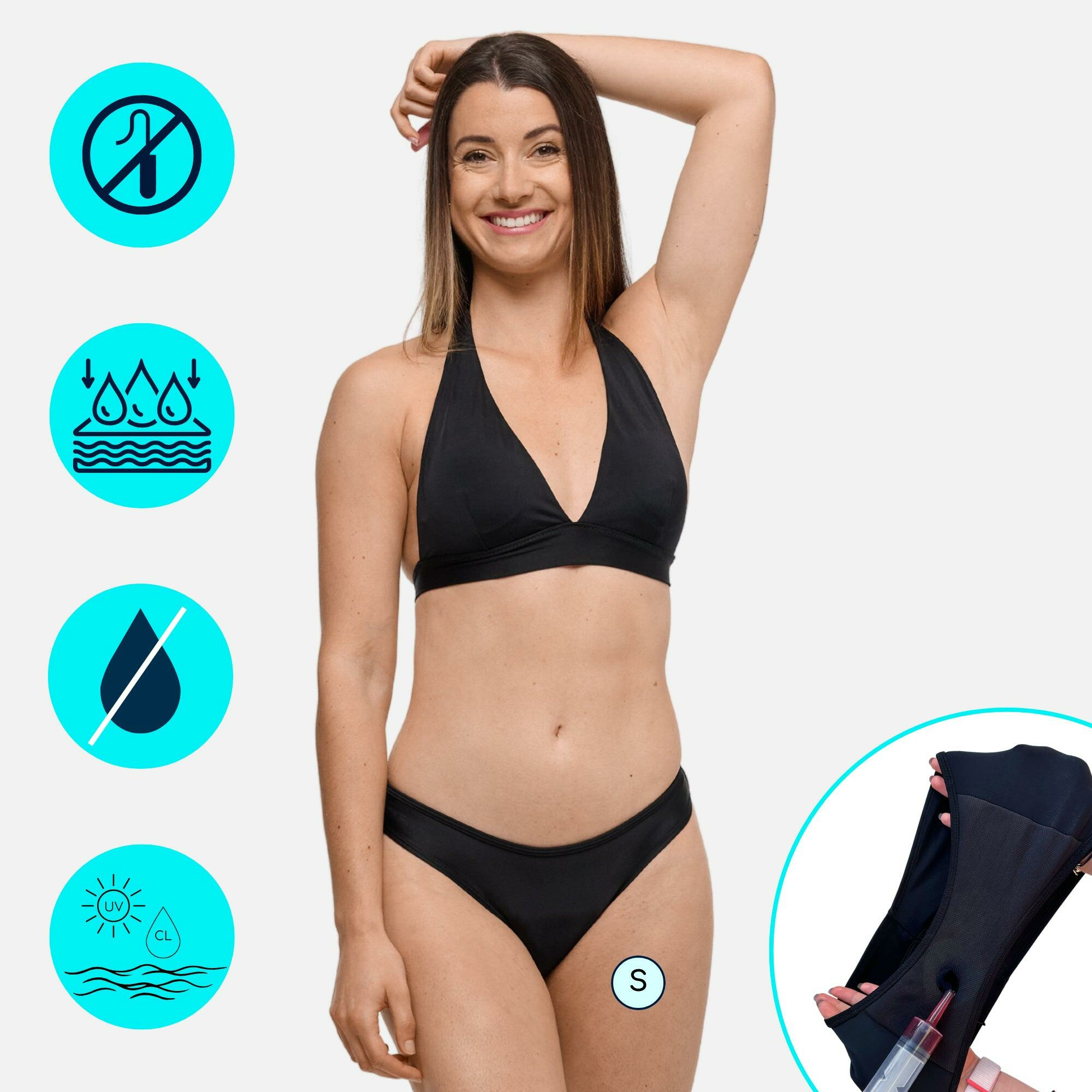 Profitez pleinement de la plage ou de la piscine, même pendant vos règles, sans compromis ni inquiétude. Le bas de maillot de bain menstruel Sorio allie confort et sécurité pour femme et adolescente.