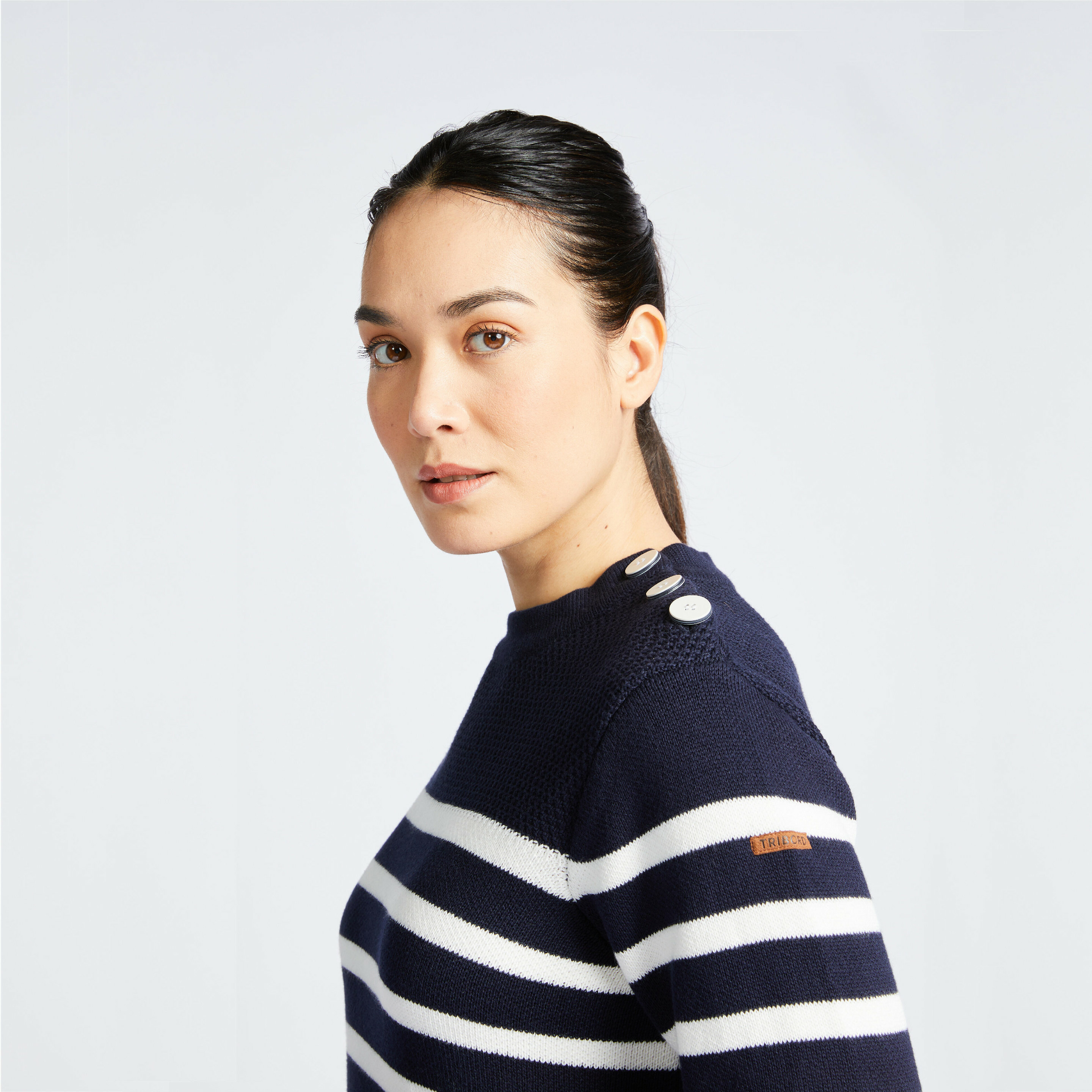 Ce pull marin, à la fois authentique et élégant, apporte chaleur pour naviguer par temps frais, entre 10 et 13°C. Ce pull marin 100% coton apporte douceur et chaleur, avec un style marin iconique. Son col à boutons permet une ouverture facile pour son enfilage.