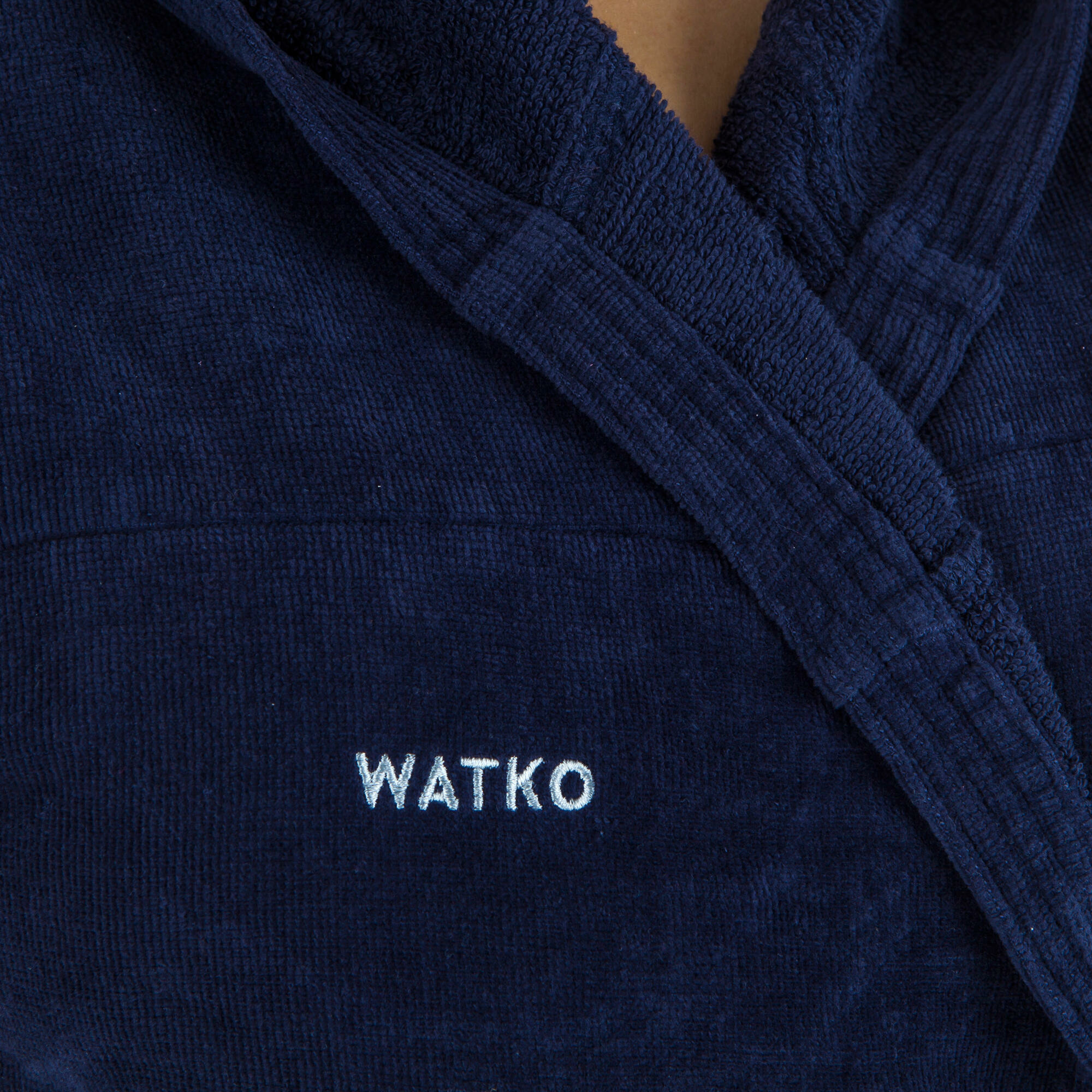 Confectionné en coton épais de haute qualité, ce peignoir est doté d’une ceinture ajustable et de poches latérales pour plus de fonctionnalité. Sa teinte bleu foncé résiste au temps et aux lavages, assurant un maintien optimal de la couleur et de la forme.