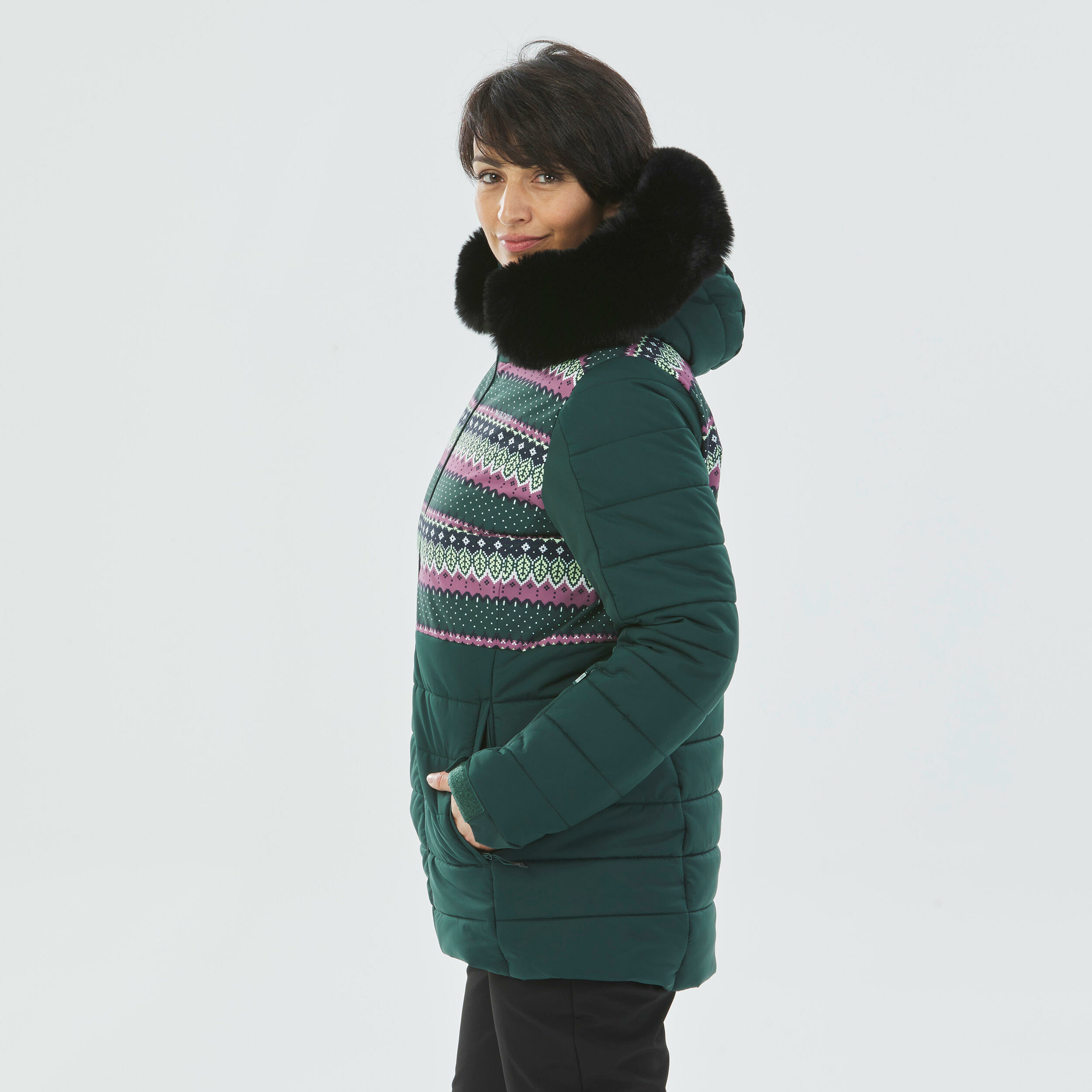 Du confort et de la chaleur, même en skiant ? Cette veste est faite pour ça ! Sa coupe mi-longue et son col montant vous protègent du froid. À vous les pistes ! La jupe pare-neige, le serrage aux poignets et la matière imperméable (10000 mm) vous protègent des éléments extérieurs. Pour l'ambiance cocooning, vous pouvez compter sur la capuche enveloppante.