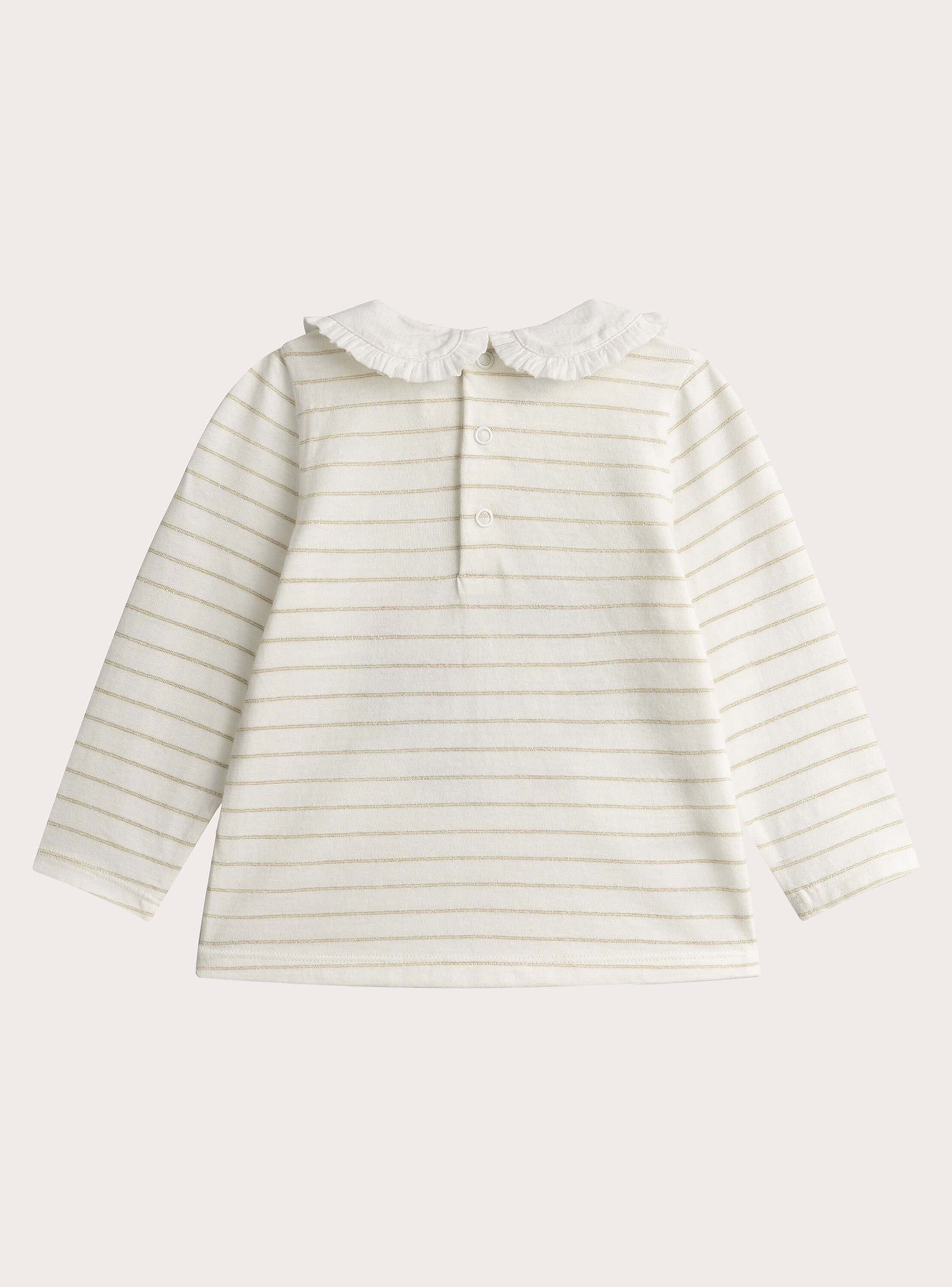 Conçue dans un tissu doux et respirant, cette brassière enveloppe délicatement la peau sensible de votre enfant tout en assurant une liberté de mouvement optimale. Son motif rayé apporte une note classique et moderne à la fois, facile à assortir avec toutes ses tenues. Parfaite pour les journées fraîches, elle se porte aussi bien en sous-vêtement qu’en pièce principale.