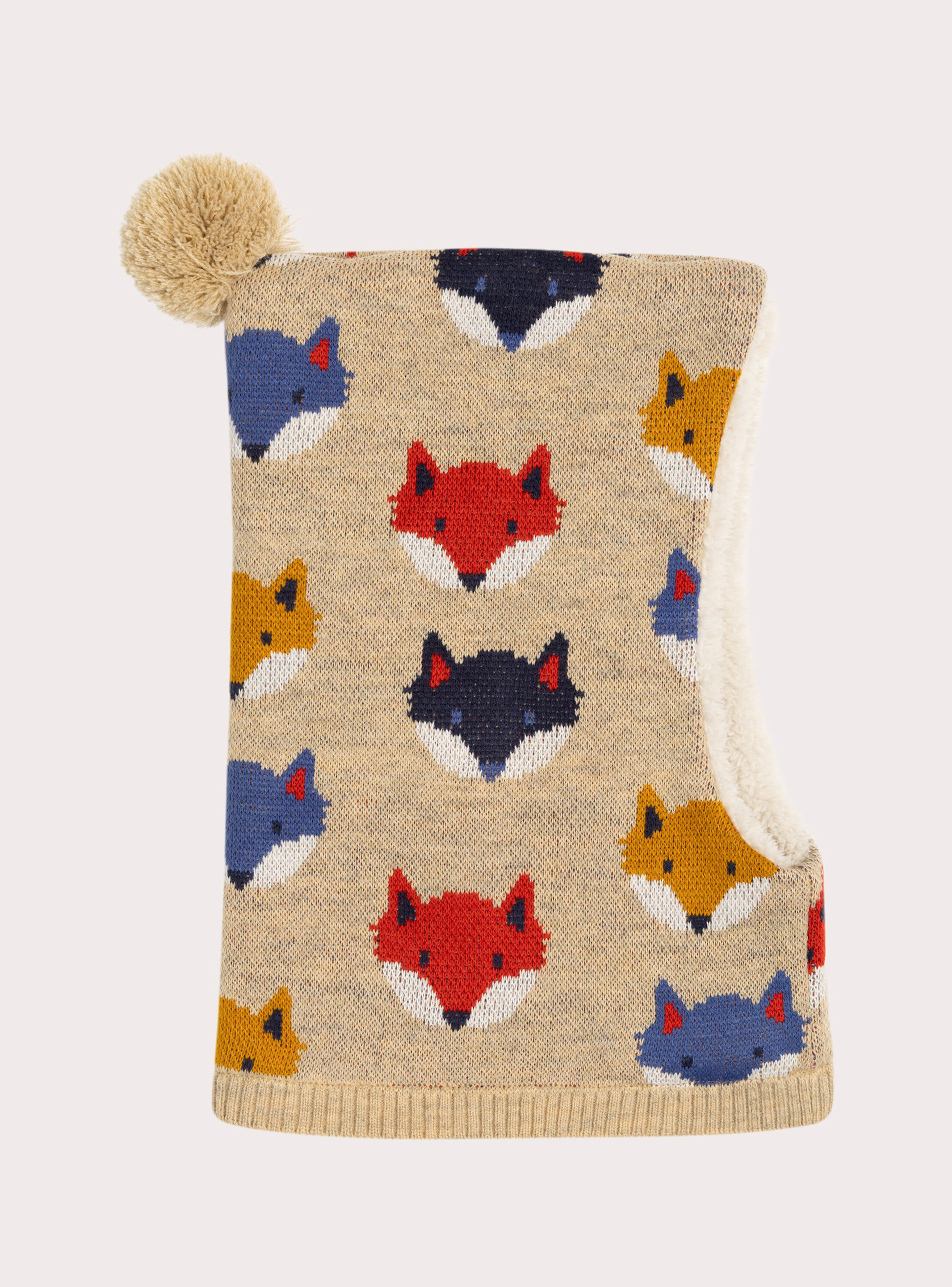 Protégez votre enfant du froid avec style grâce à cette cagoule à motifs renard multicolores, conçue pour apporter chaleur et originalité. Un accessoire ludique qui transforme l’hiver en une aventure colorée.