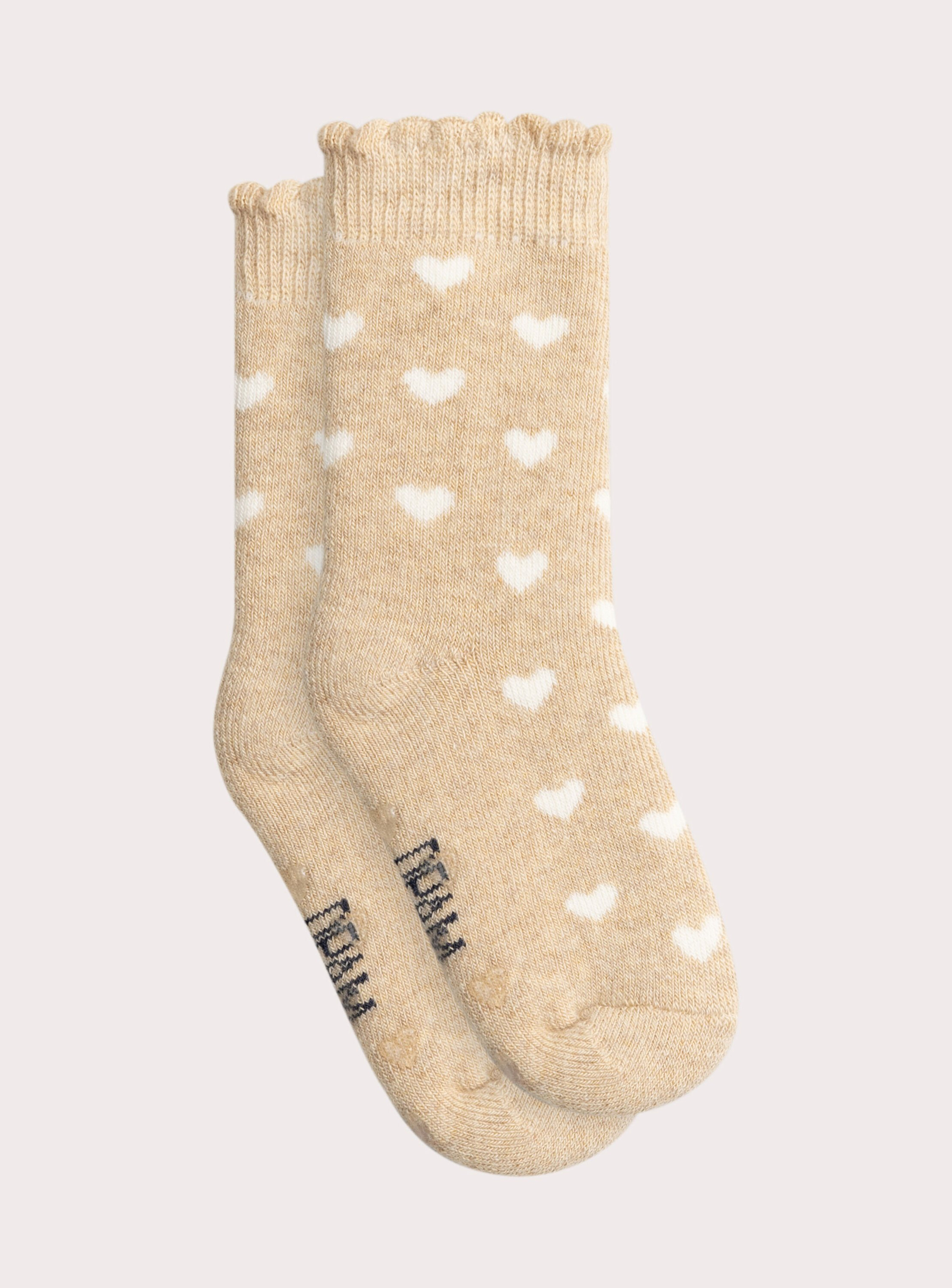 Offrez à votre bébé fille douceur et sécurité avec ces chaussettes chaudes beige ornées d’un motif cœur délicat. Conçues pour accompagner ses premiers pas, elles allient confort et praticité.