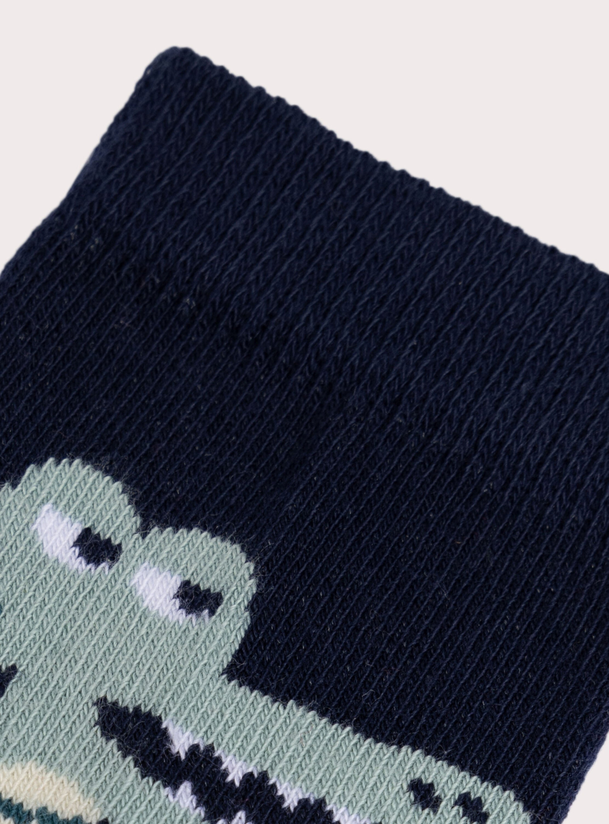 Apportez une touche ludique et colorée à la garde-robe de votre garçon avec ces chaussettes à motif crocodile. Un accessoire qui allie confort et style pour accompagner ses aventures du quotidien.