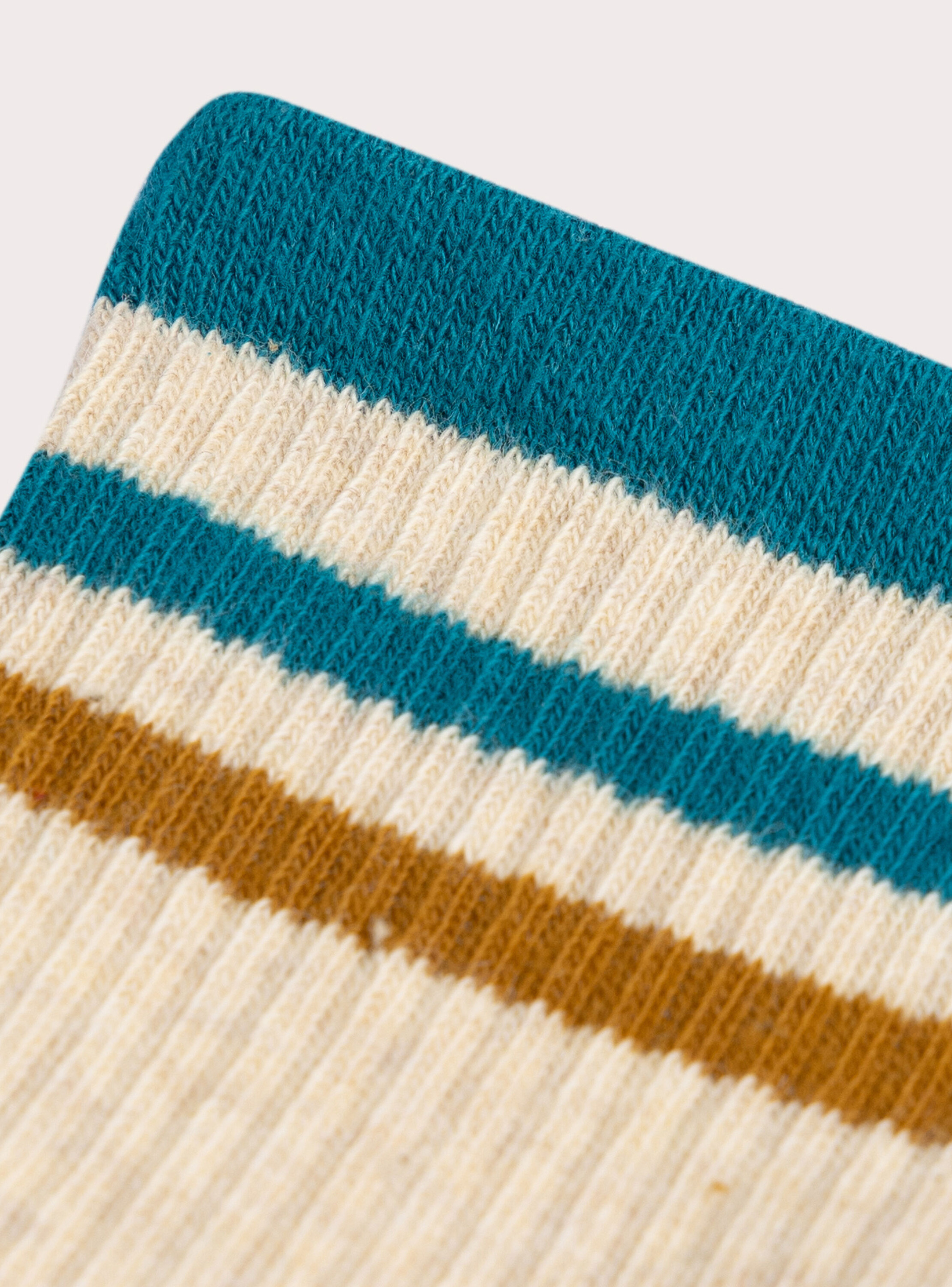 Conçues pour les jeunes actifs, ces chaussettes se distinguent par leur motif chiné subtil et leurs détails fantaisie qui dynamisent le look sans en faire trop. Leur texture douce et résistante assure un maintien optimal tout au long de la journée, que ce soit à l’école ou lors des activités sportives.