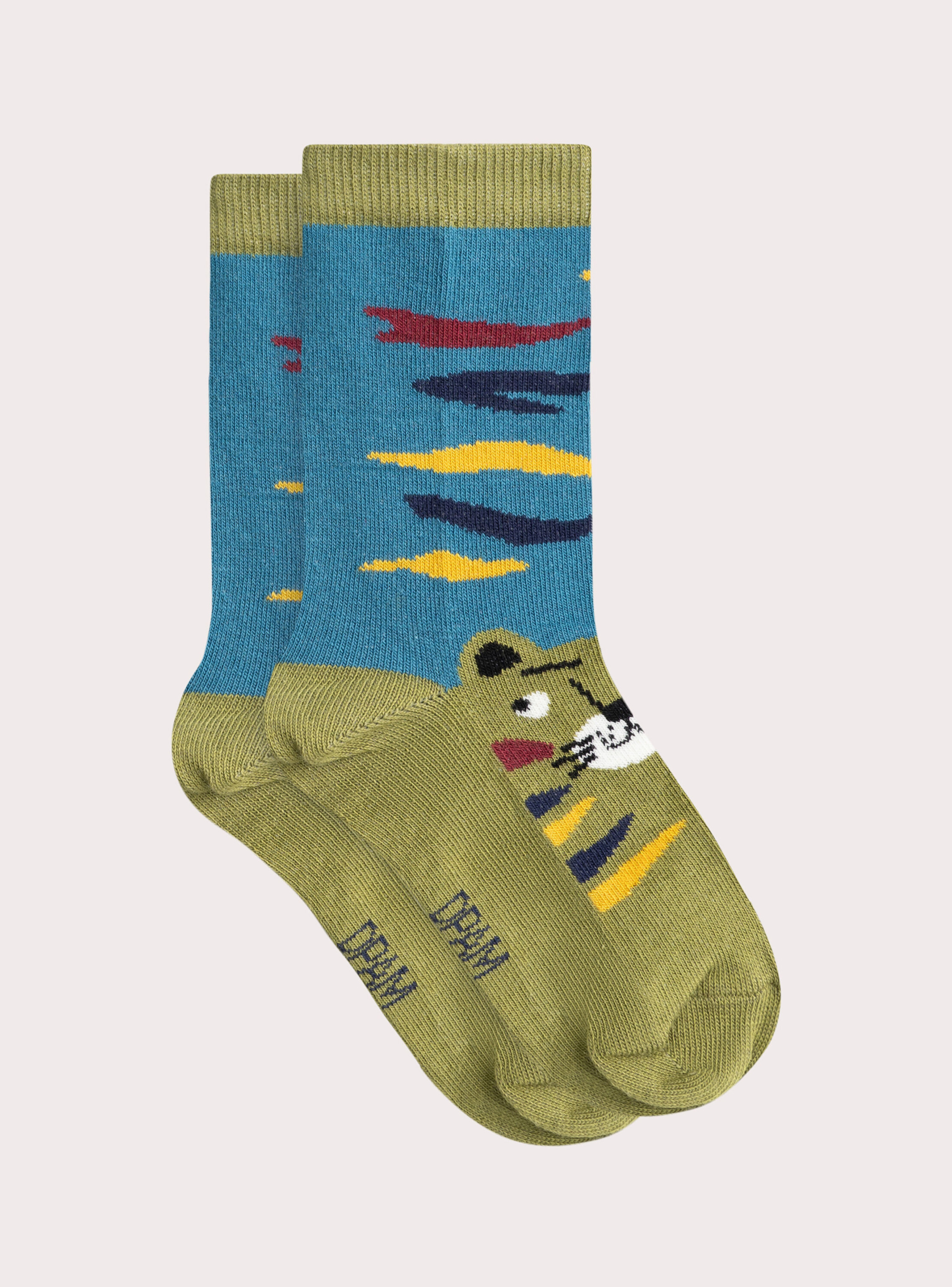 Offrez à votre garçon une touche d’audace avec ces chaussettes turquoises ornées d’un motif tigre dynamique. Un accessoire qui allie confort et style pour accompagner toutes ses aventures.