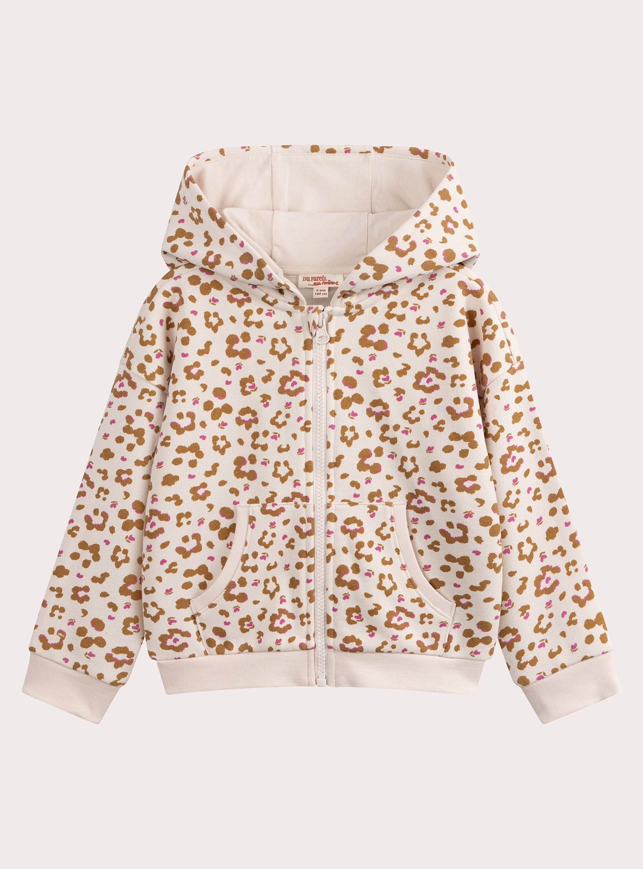Offrez à votre fille un style audacieux et confortable avec ce haut de jogging écru imprimé léopard. Une pièce tendance qui allie douceur et caractère pour accompagner ses journées actives.